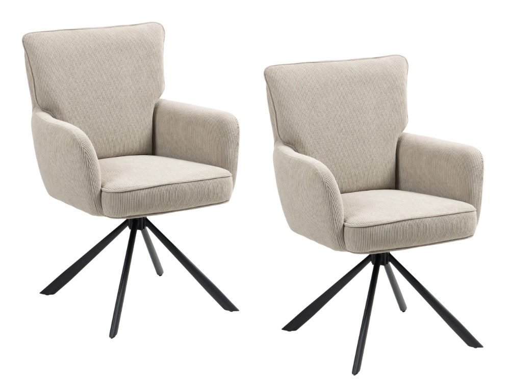 Der Stuhl Rock überzeugt mit seinem modernen Look, weichem Cordbezug und hohem Sitzkomfort. Die 180-Grad-Drehfunktion mit automatischer Rückstellmechanik sorgt für flexible Bewegungsfreiheit und elegantes Назадschwingen in die Ausgangsposition. Das stabile Metallgestell in Schwarz rundet das stylische Design perfekt ab – ideal für Esszimmer, Home-Office oder Besprechungsräume.