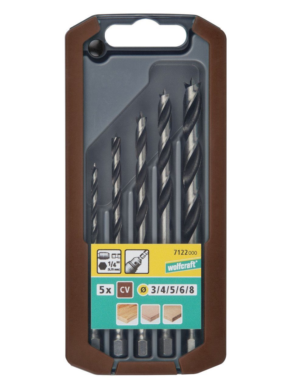 Wolfcraft Holzspiralbohrer-Set CV-Sechskant-Schaft Ø 3 - 8 mm 5-teilig