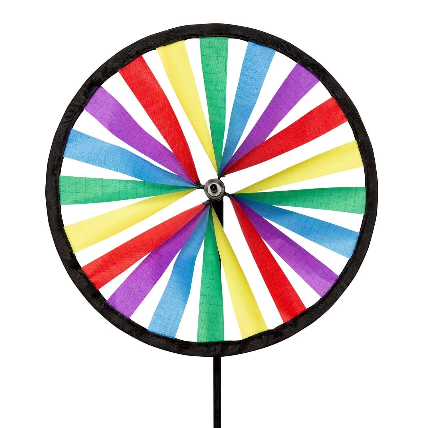 Das Wolkenstürmer Chinarad ist ein Windspiel mit einem bunten Rad, was sich schön und farbenfroh im Wind dreht. Das bunte Windrad macht sich super auf deinem Balkon oder im Garten. Du kannst das einrädrige Windrad ganz einfach mit dem beiliegenden Glasfaserstab in den Boden der Blumentopf stecken und schon steht die hübsche Gartendeko! Das Windspiel besteht aus wetterfestem Polyesterstoff und hat einen Durchmesser von 20 cm. Bereits bei wenig Wind dreht sich das Windrad wunderschön im Wind. Das Windrad kommt klein verpackt zu dir nach Hause und ist super schnell aufgebaut!