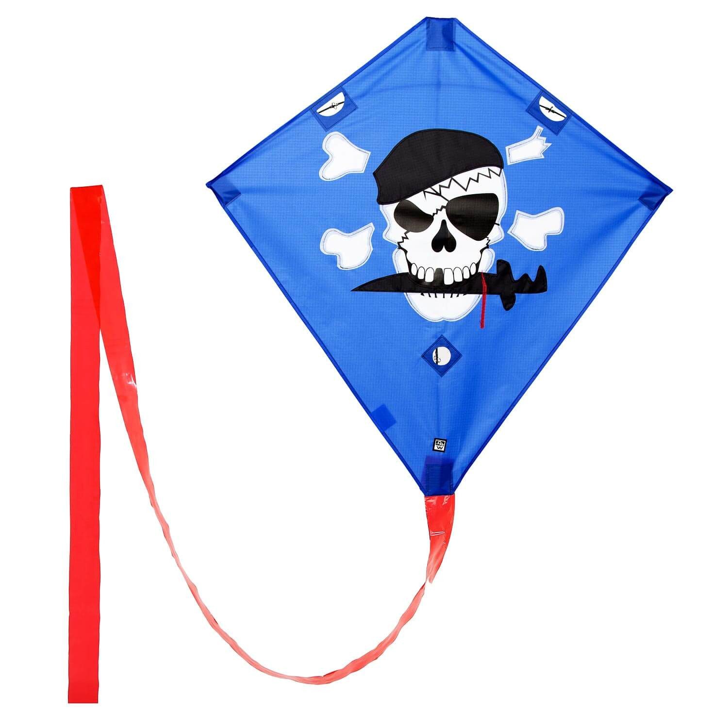 Der freche Racer Pirat Drachen ist ein klassischer Rautendrachen, der sich sowohl als Einleiner Lenkdrachen, als auch als Zweileinerdrachen fliegen lässt. Er ist ab 5 Jahren geeignet, macht aber auf jeden Fall auch älteren Piloten viel Spaß! Sein 15 m langer Drachenschwanz im knalligen rot zeichnet alle Flugfiguren eindrucksvoll nach. Das sorgt nicht nur für schöne Flugmanöver, sondern auch für mehr Stabilität am Himmel. Ein imposantes Bild am Himmel ergibt sich, wenn mehrere Racer Drachen als Gespann-Flug miteinander verbunden werden und durch die Lüfte gleiten! Ein Highlight, das man nur noch selten zu sehen bekommt! Der Wolkenstürmer Drachen fliegt bei 2-5 Bft. und wird dir an 2x 25 m langen und 25 kp Schnüren fertig angeleint geliefert. Das heißt, dass du den Drachen ready to fly erhältst. Der Flugdrachen selbst hat eine Spannweite von 90 cm und besitzt ein 4 mm starkes