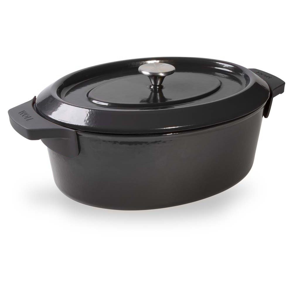 Kochgeschirr aus Eisenguss gibt es schon seit Jahrhunderten. Man kann Omas Sonntagsbraten wohl kaum nostalgischer zubereiten, als in einem farbenfrohen Eisenbräter der IRON Serie. Doch wir wären nicht Woll, wenn wir nicht auch diese traditionelle Handwerkskunst ein bisschen besser machen würden. Also haben wir eine extra raue Emaillebeschichtung entwickelt, die Bratensaft geschmacklich konzentriert. Und einen Deckel, der das Bratgut von selbst berieselt und es damit unvergleich zart macht. Da staunt sogar die Oma.