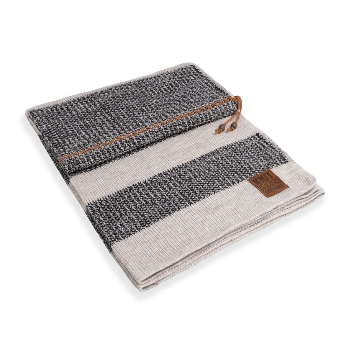 Das stilvolle Design dieser Knit Factory Roxx Wohndecke in der Farbe Beige/Schwarz verleiht Ihrem Wohnzimmer oder Ihrer Veranda das gewisse Etwas. Die Kombination aus grober und feiner Strickarbeit, die hellen und dunklen Streifen und die Strickkordel lassen diese geschmackvolle Couchdecke auffallen. Selbstverständlich fehlt auch das fetzige Knit Factory Lederlabel nicht. Ein wunderbare Plaid Decke für gemütliche Abende auf dem Sofa. Warme, weiche und komfortable Strickarbeit. Egal, wo diese Decke ihren Platz findet und ob sie mit dem passenden Roxx Kissen kombiniert wird oder nicht: sie ist ein Hingucker. Diese dekorative Wolle/Acyl-Decke ist sowohl in meliertem Beige/Schwarz als auch in anderen stimmungsvollen Farben erhältlich.