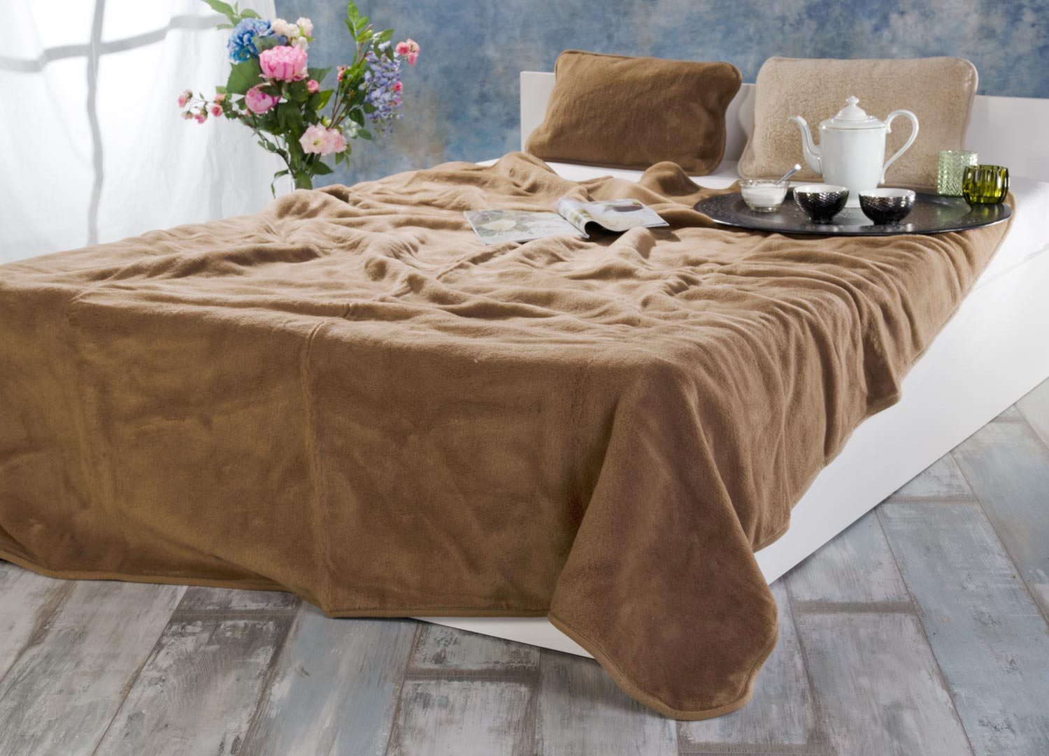 Wolldecke Schoko aus 90% Merinowolle und 10% Kamelhaar.