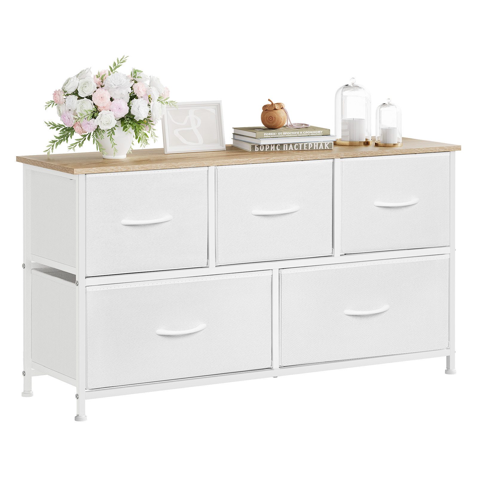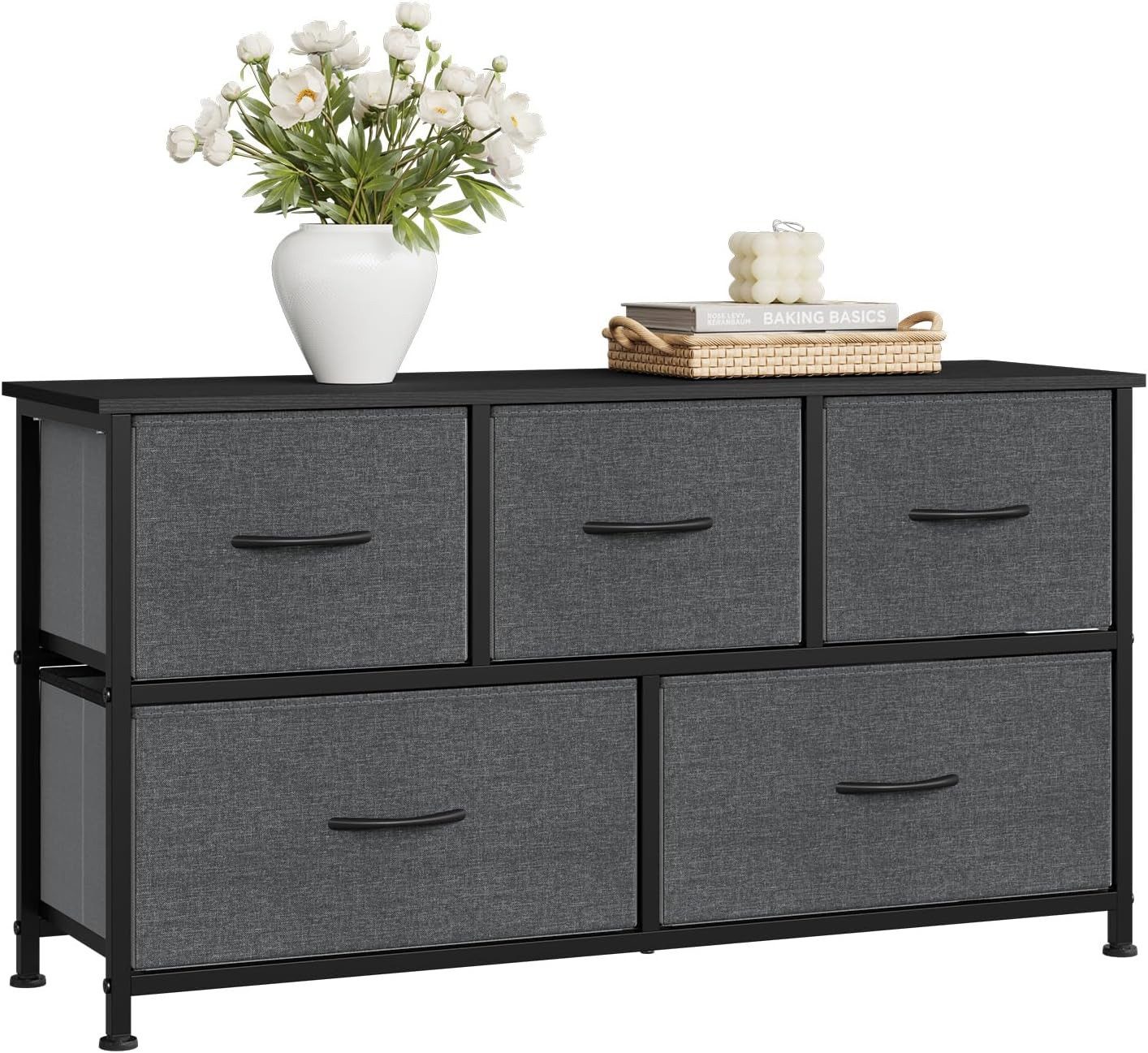 Großes Fassungsvermögen: Die 5 Schubladen in 2 Größen können Ihren unterschiedlichen Aufbewahrungsbedürfnissen gerecht werden. Sie können Kleidung, Socken, Schals, Spielzeug usw. darin aufbewahren. Die oberste Platte (100x30 cm) ist bis zu 40 kg belastbar und kann Vasen, Bilderrahmen, Tischlampen usw. aufnehmen.