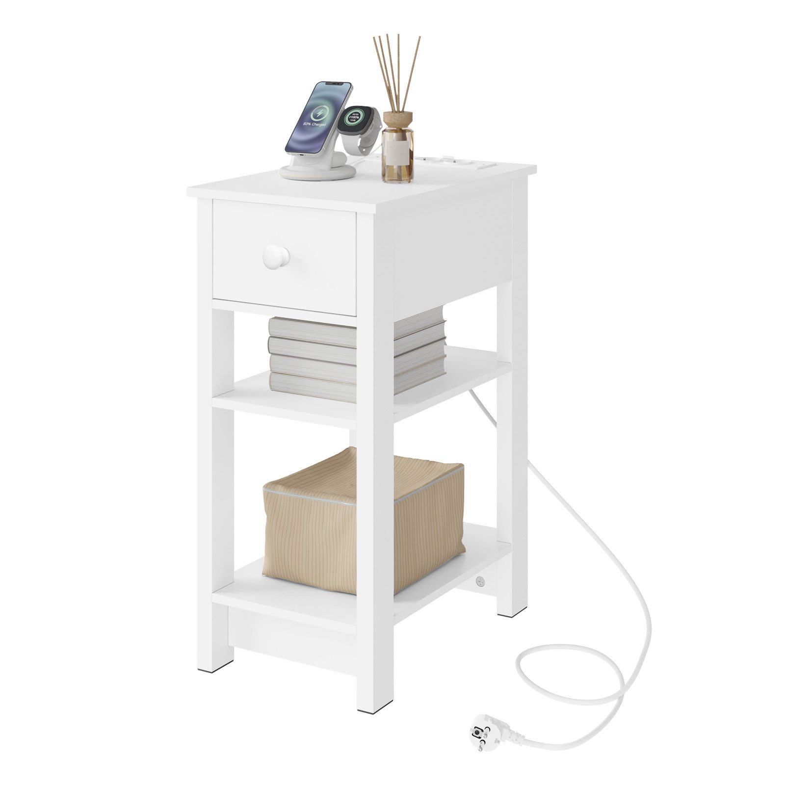 Nachttisch mit ladefunktion: Dieser Nachtschrank verfügt über eine integrierte Steckdosenleiste mit 2 Steckdosen und 2 USB-Anschlüssen, sodass Sie Handy, Tablet, Laptop und andere elektronische Geräte gleichzeitig aufladen können. Dank des 1,5 m langen Netzkabels können Sie den Beistelltisch in jedem Raum aufstellen, in dem Sie ihn nutzen möchten. So wird alles in Reichweite