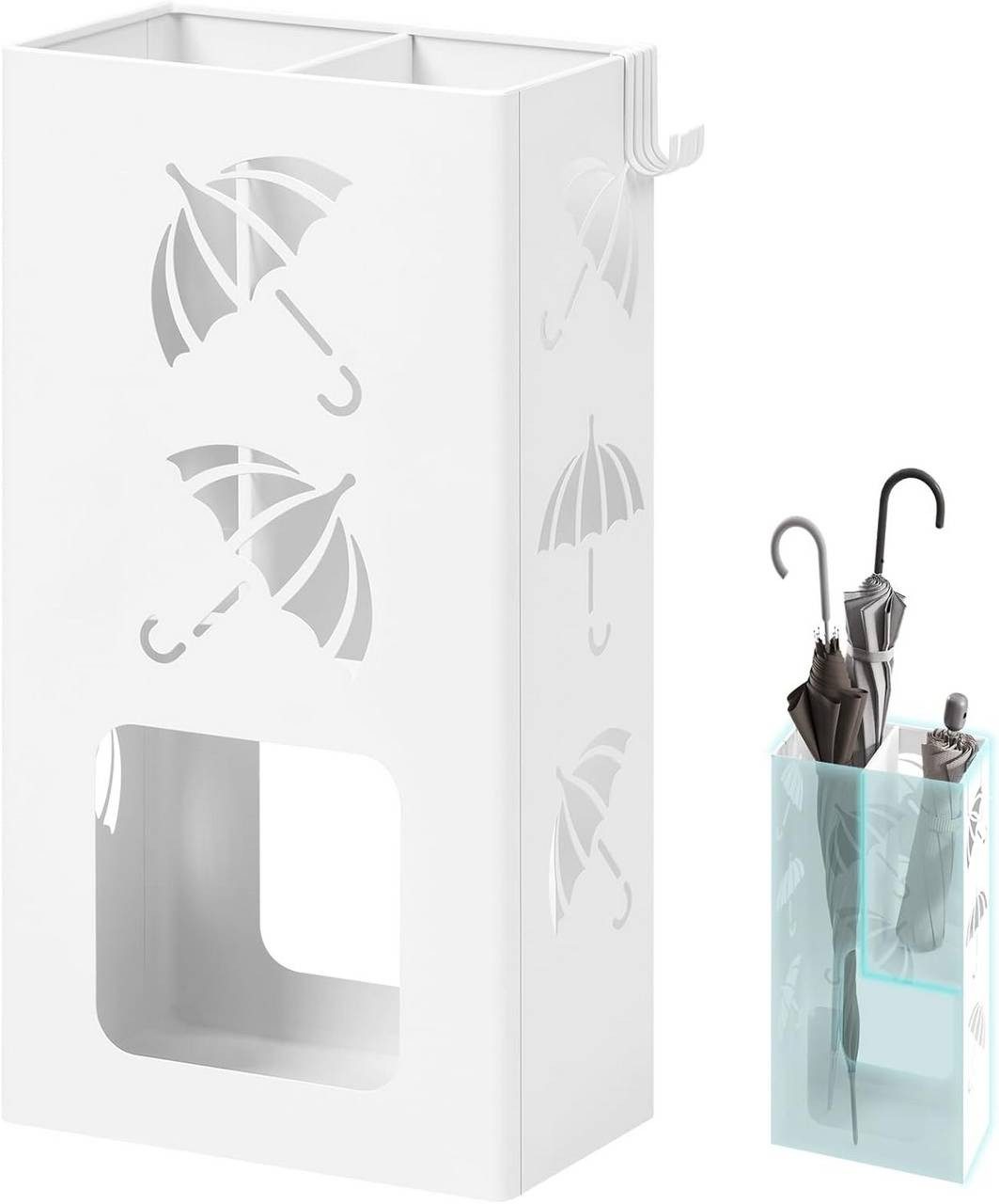 EINFACH ZU BENUTZEN: Der WOLTU Regenschirmhalter ist mit verstärkten Haken ausgestattet. Zusätzlich zum Aufhängen von Regenschirmen können an den Haken auch kleine Gegenstände aufgehängt werden, die leicht verloren gehen, wie z. B. Schlüssel, Haustierleine und Brieftasche. Dieser moderne Ständer bietet Platz für Ihre Regenschirme und kleine Gegenstände und ermöglicht so eine bequeme und sorgenfreie Nutzung.