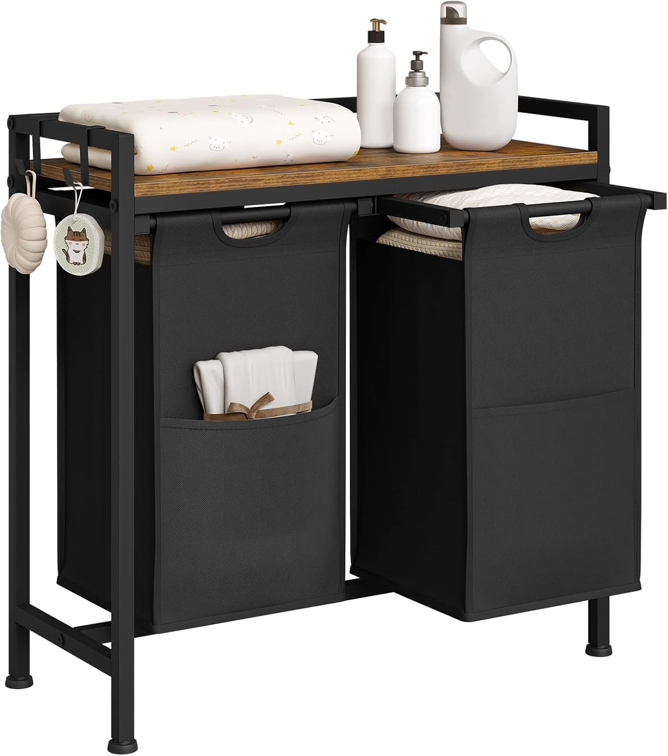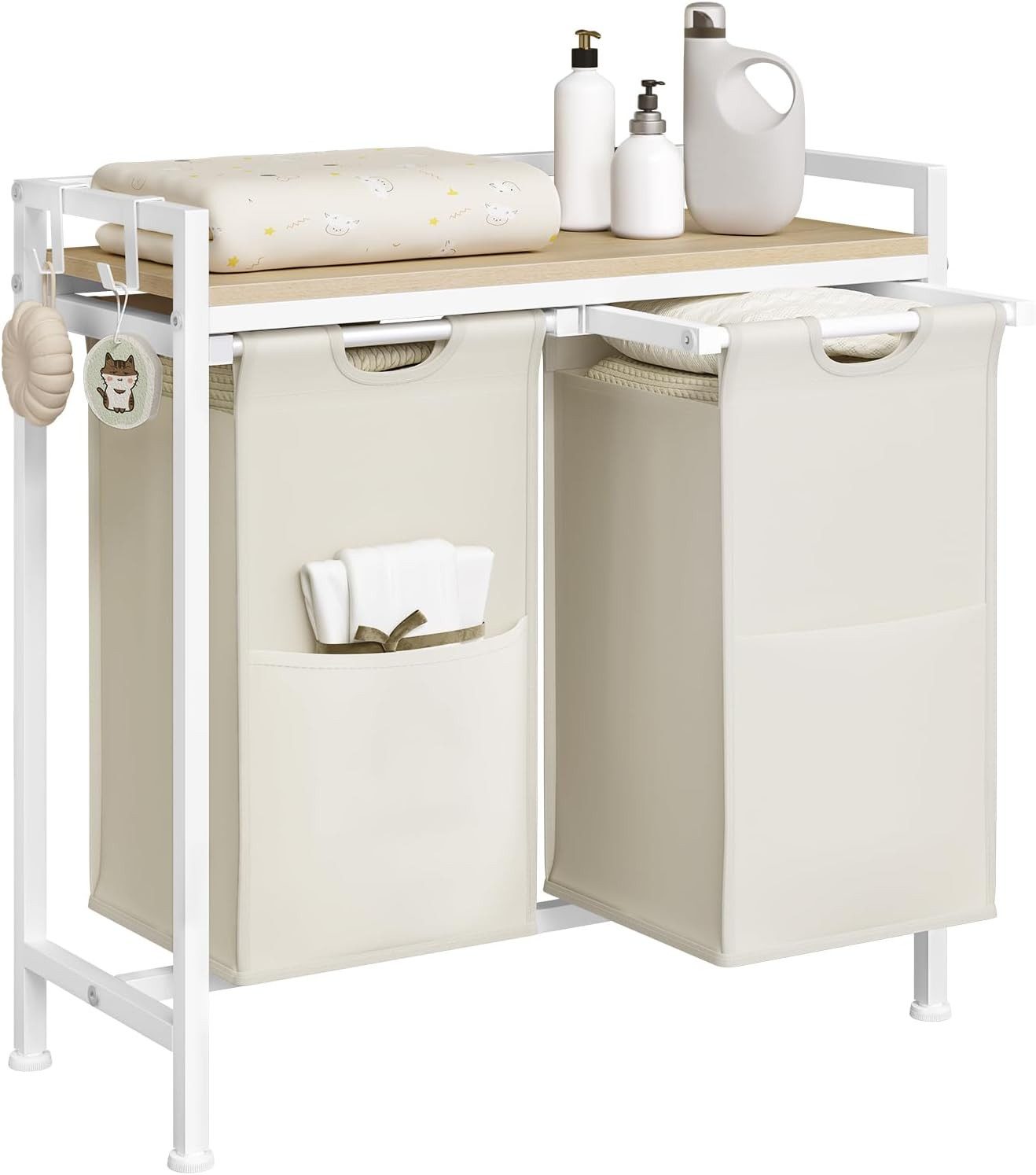 Abnehmbare Wäschesammler: Die Wäscheboxen mit Klettverschlüssen lassen sich abnehmen, sodass Sie sie leicht transportieren und die Schmutzwäsche reinigen.
