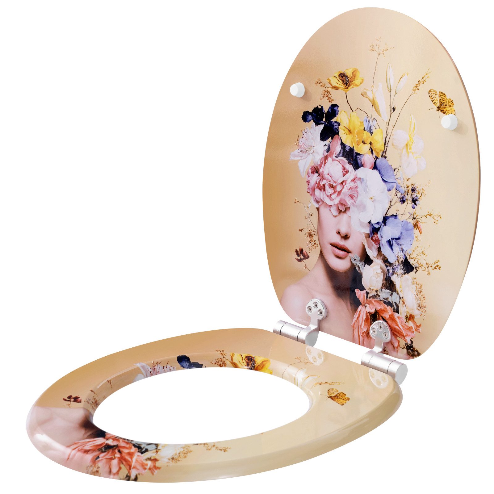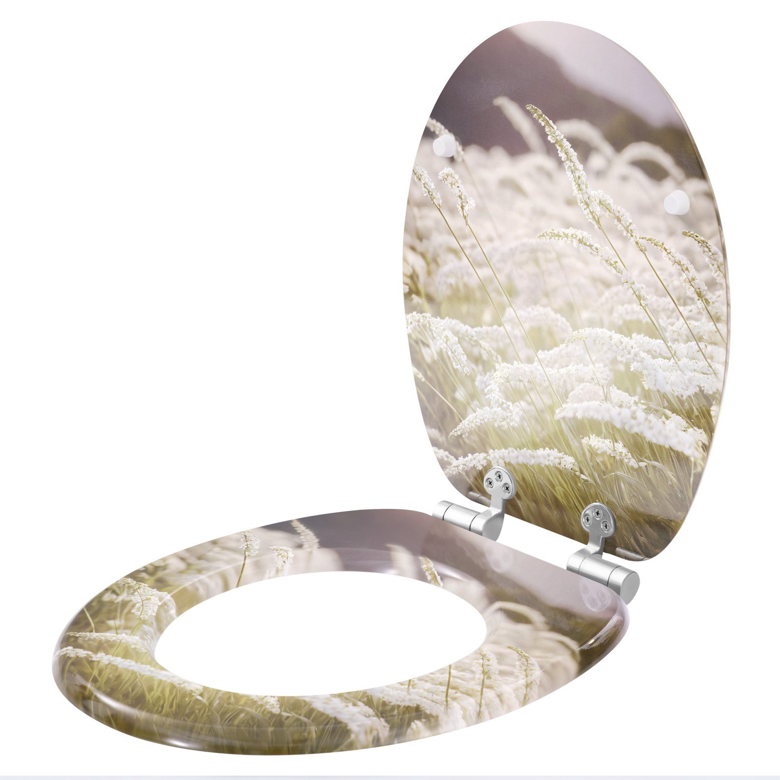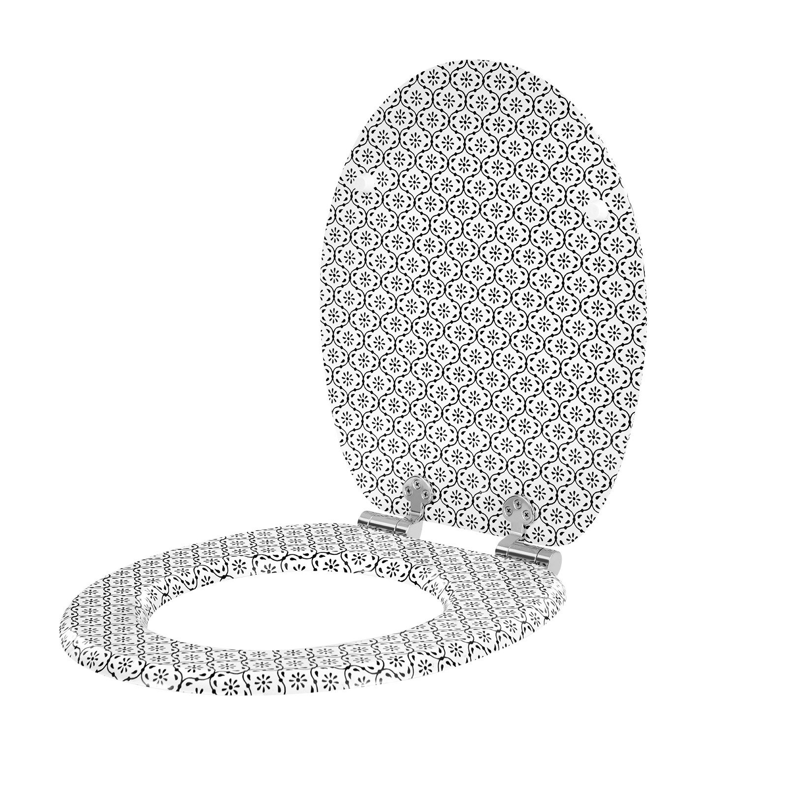 Robust und langlebig: Der Toilettensitz mit Scharnieren aus Edelstahl und Zinklegierung besteht aus MDF mit PVC-Beschichtung, ist damit stark und haltbar.