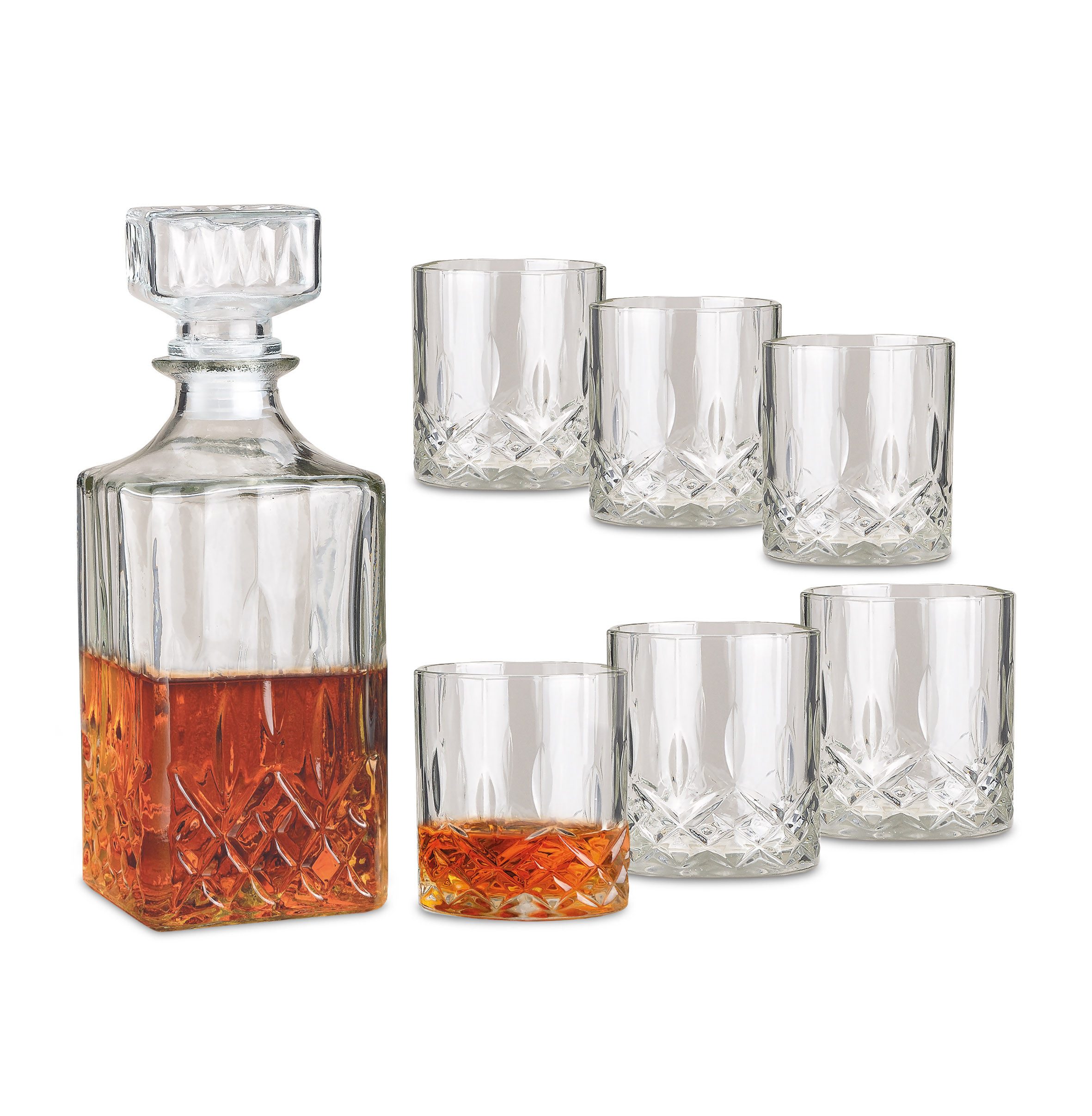 Edles 7-teiliges Geschenk Set aus Kristallglas mit 6 Whisky Trinkgläsern und 1 Karaffe