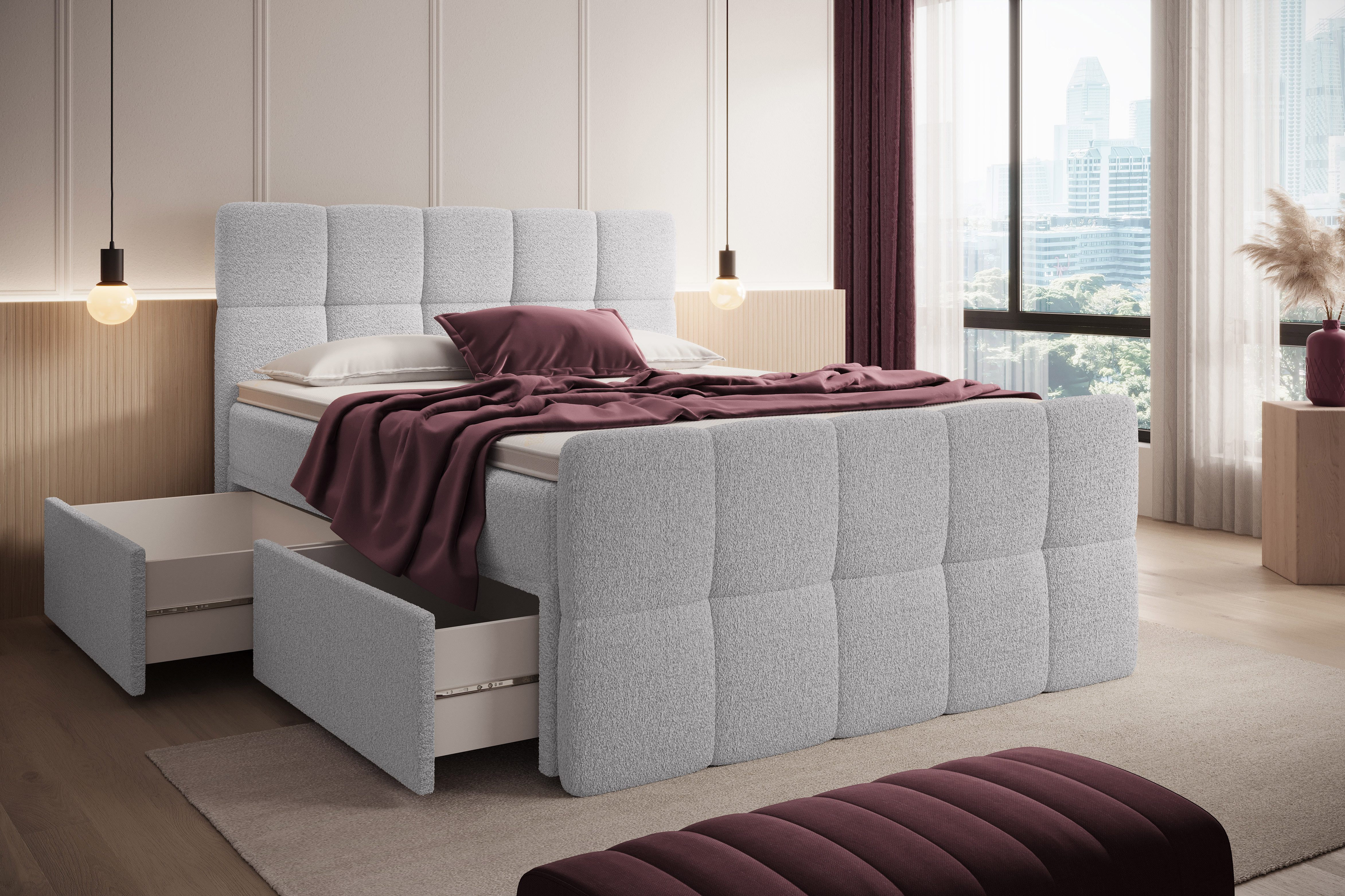 Lieferumfang | 1x Boxbett mit 4x Schublade, 2x Matratze, 1x Topper |
