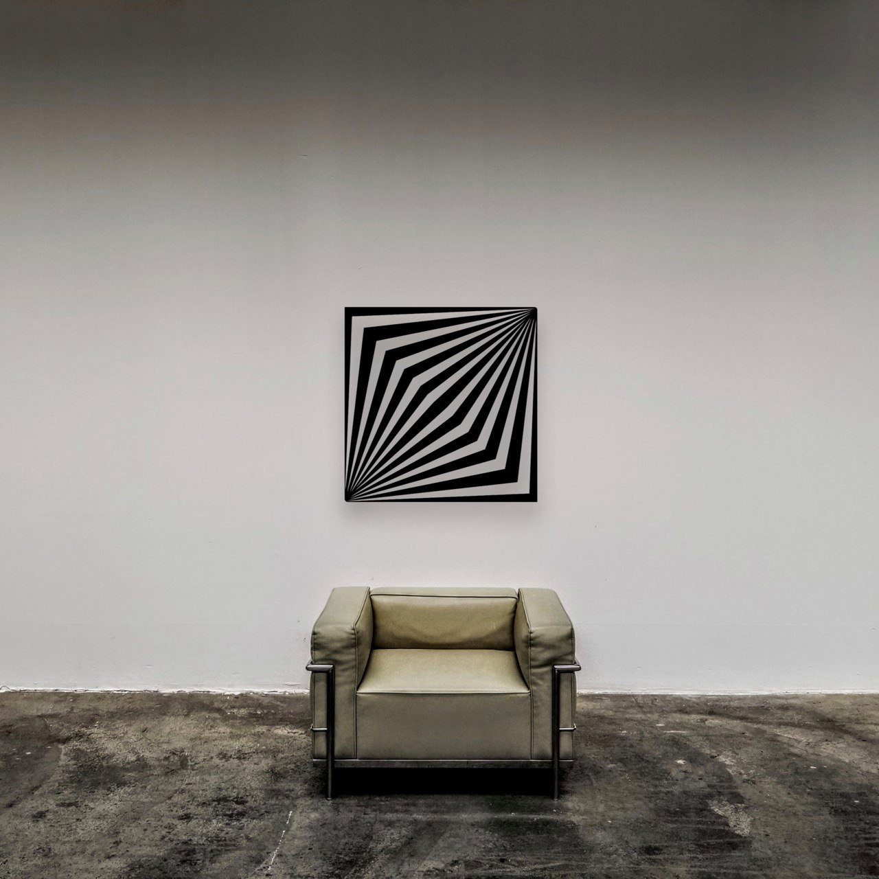 Einzigartiges Holzquadrat mit inneren symmetrischen Linien, das Ihrem Raum eine faszinierende visuelle Tiefe verleiht.