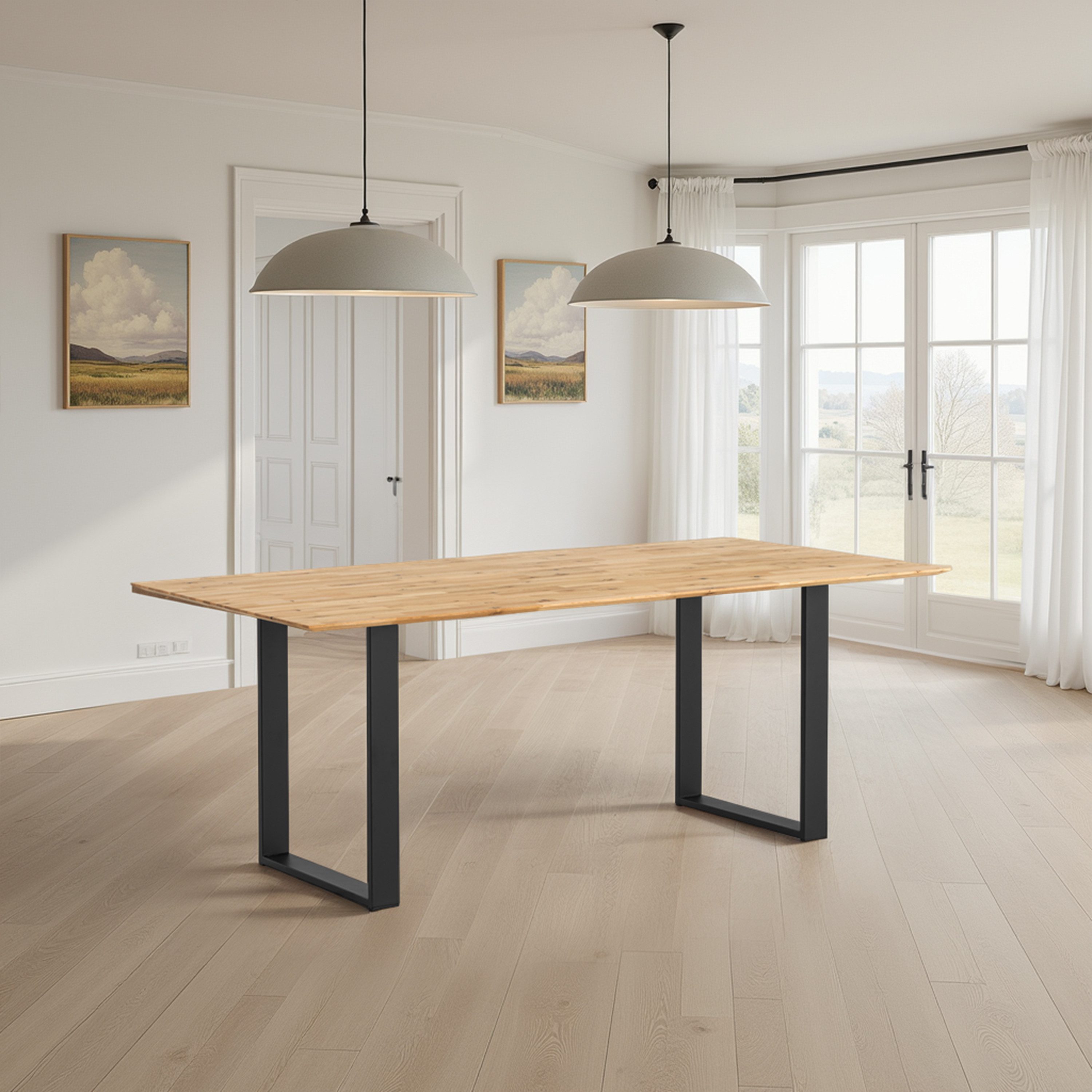 Gefertigt aus 100 % massiver Wildeiche, bietet dieser Esstisch eine besonders robuste und langlebige Qualität.