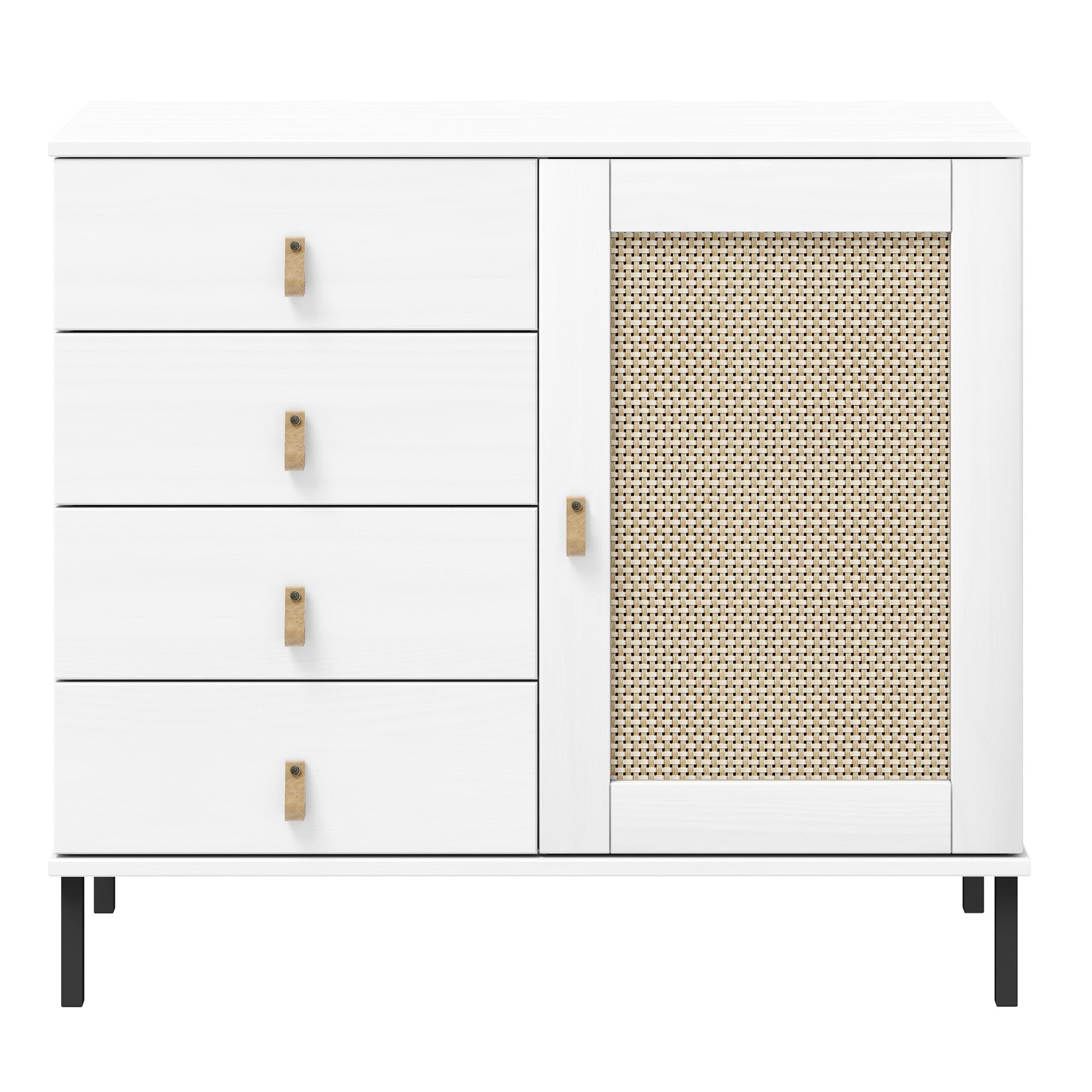 Die Kombination aus einer Tür und vier Schubladen ermöglicht es Ihnen, eine Vielzahl von Gegenständen übersichtlich und zugänglich zu lagern. Ob im Wohnzimmer, Schlafzimmer oder Flur, dieses Möbelstück fügt sich nahtlos in jede Umgebung ein und verstärkt das Ambiente Ihres Zuhauses.