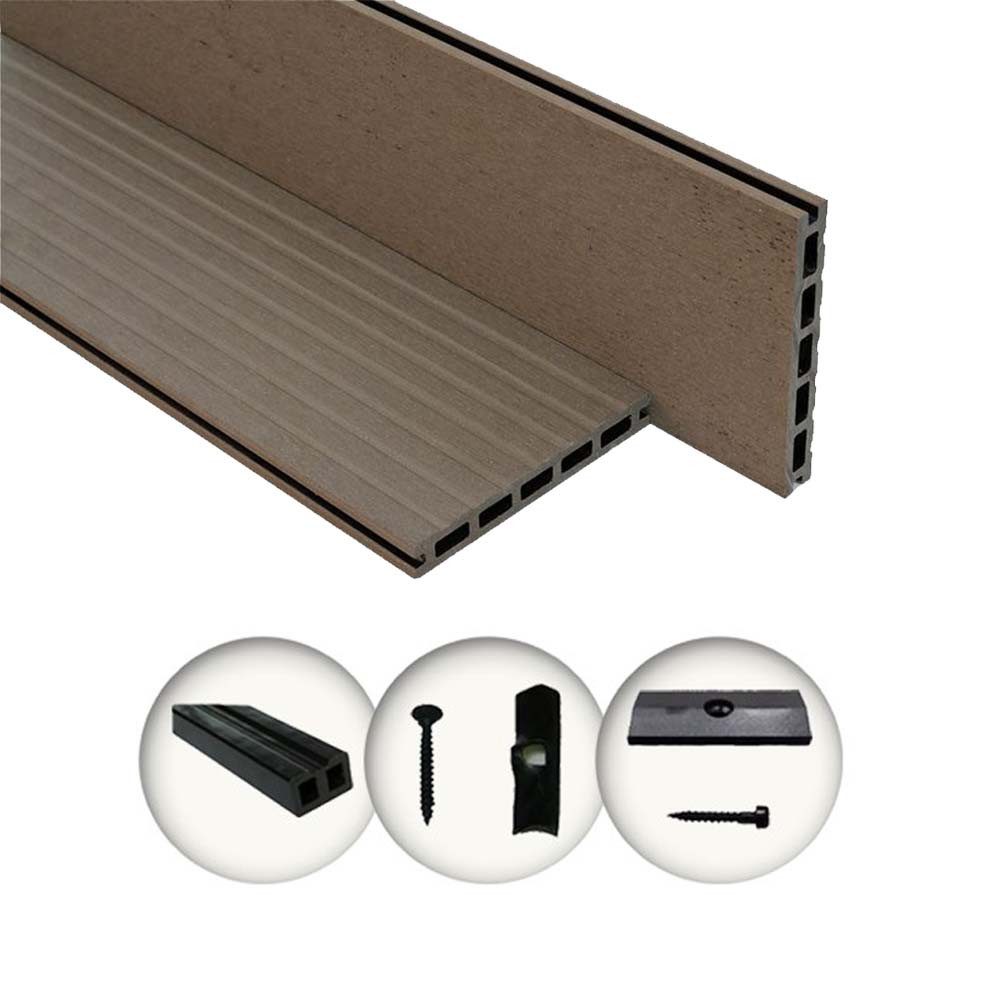 6 m² = 18 Dielen + 9 Unterkonstruktion + 2 Pkg. Clipse + 1 Pkg. Starter / Endclip