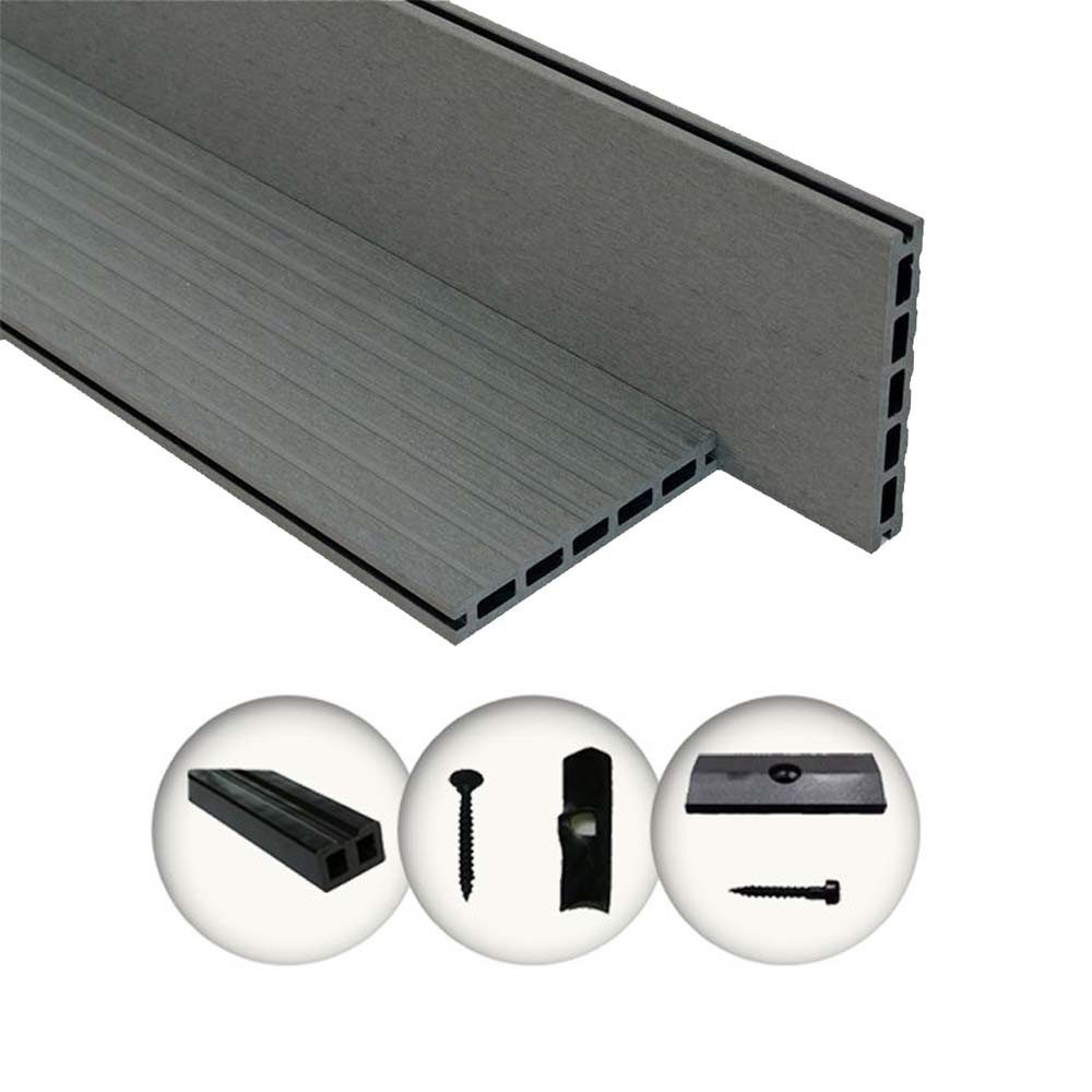 Terrassendielen WPC / BPC Komplettset WoodoBasic (20 x 145 mm, 2,4 m lang) grau
