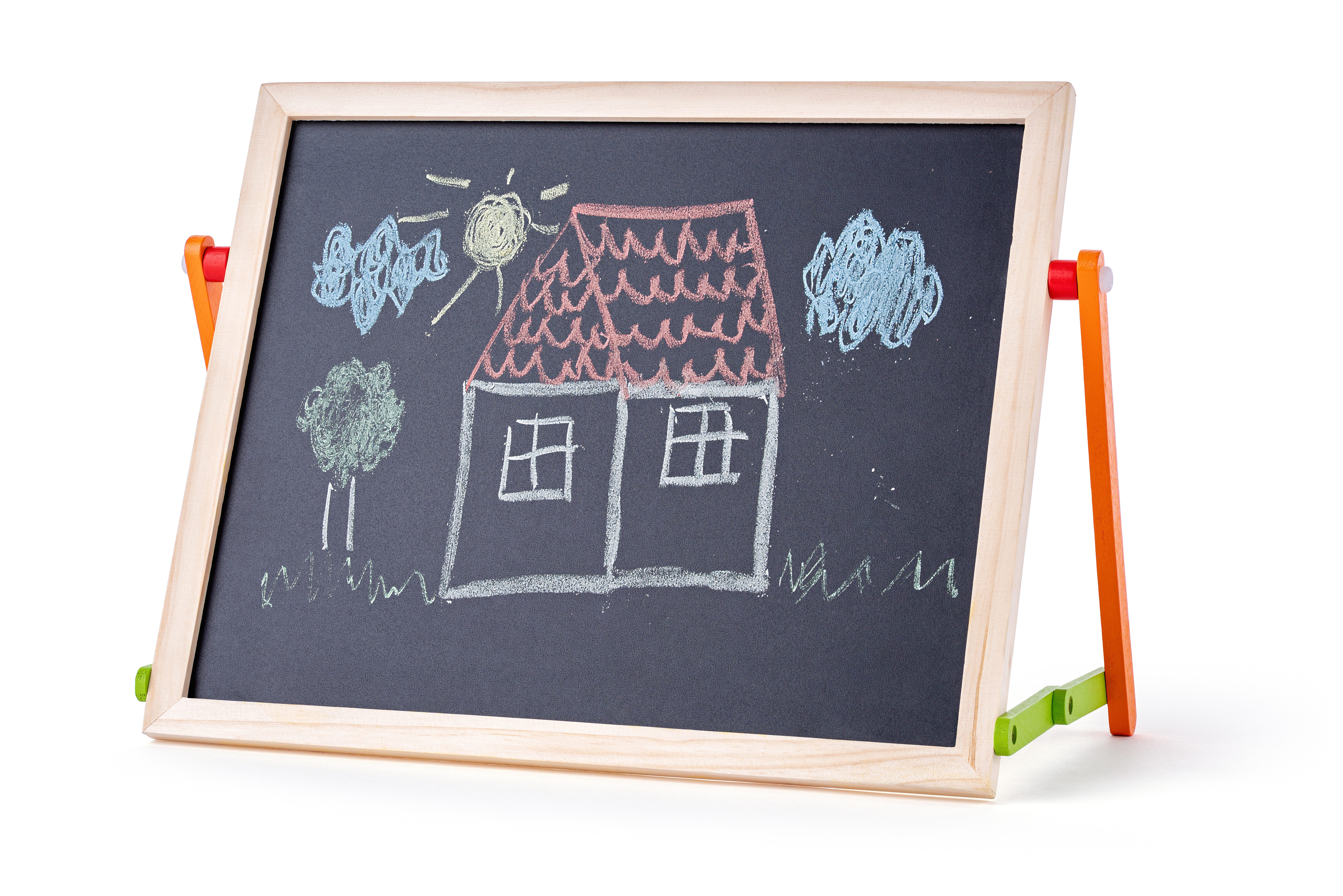 Lieferumfang | 1 Tafelwischer 1 Whiteboardmarker mit Wischfläche 4 bunte Kreiden 2 in 1 Tafel |