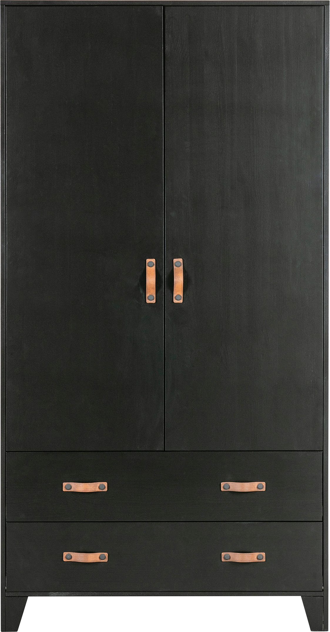Ergänzende Informationen | Robuster, stabiler KleiderschrankSchwarzkiefer (FSC)Ausreichend Stauraum vorhandenAbmessungen (HxBxT): 180 x 94 x 40 cmDiese Dian-Garderobe ist zeitgemäß, einfach und ein bisschen hart. Dian ist ein Eigenentwurf und gehört zur WOOOD-Kollektion. Der Schrank ist aus Kiefernholz gefertigt, das in einer robusten schwarzen Farbe lackiert ist. Der Schrank hat zwei Schubladen mit zwei Ledergriffen pro Schublade und zwei Türen mit einem Ledergriff. Dies bietet viel Stauraum. Durch das moderne, robuste Aussehen passt dieser Schrank in viele Schlafzimmer!Separat erhältlich in der Serie Dian sind ein Bett, ein Schreibtisch oder ein Schrank, um ein komplettes Schlafzimmer zu schaffen.Der Kleiderschrank Dian hat eine Höhe von 180 cm, eine Breite von 94 cm und eine Tiefe von 40 cm.Der Artikel wird als einfacher Bausatz mit einer klaren Montageanleitung geliefert.Legen Sie Filzgleiter unter die Beine. Dies verhindert Schäden an harten Böden. |
