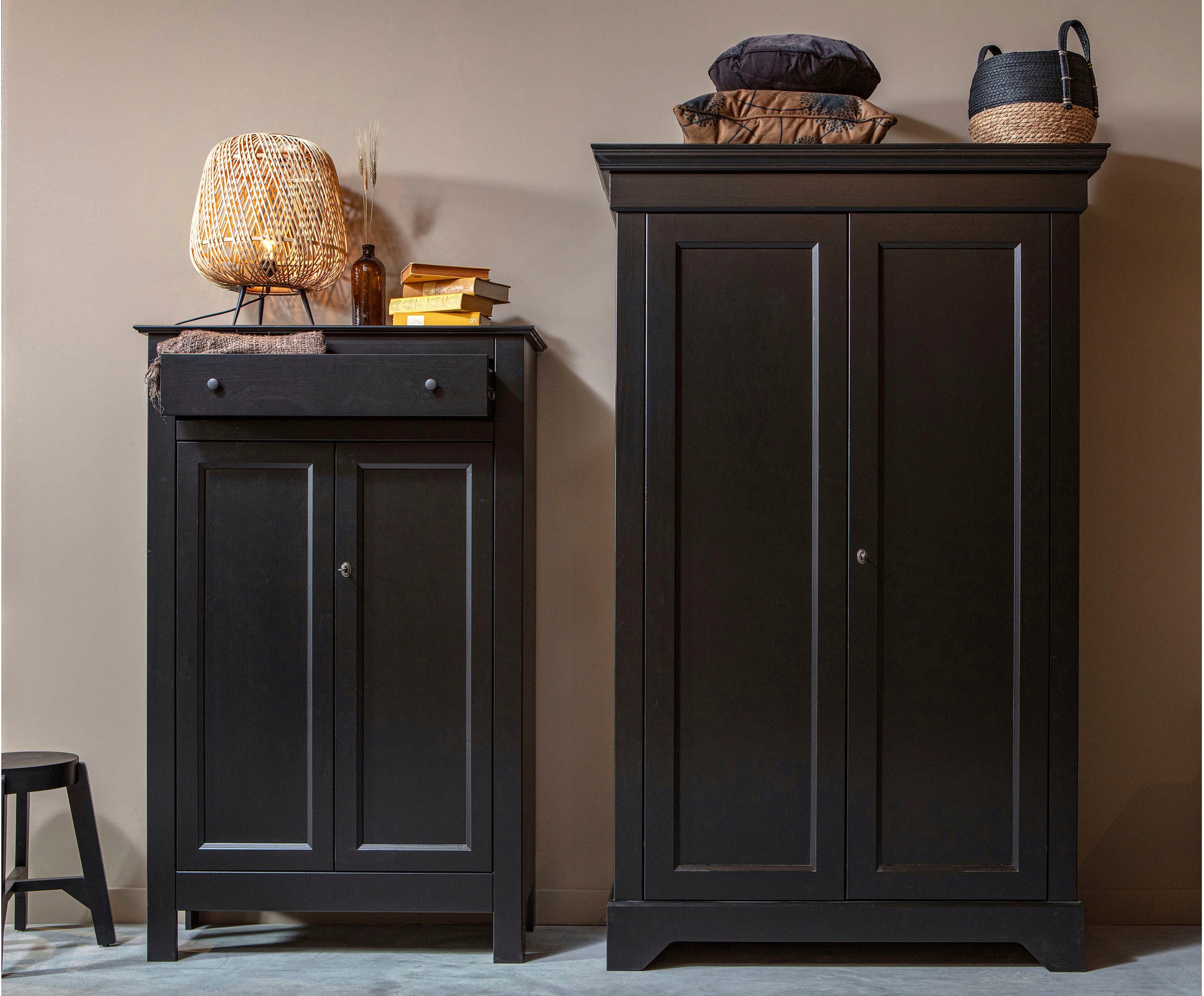 Ergänzende Informationen | Der Brocante-Schrank Isabel ist eine Produktion der niederländischen Marke WOOOD. Der Isabel-Schrank (hxbxd) 191x118x47 cm ist ein Brocante-Schrank und besteht aus massiver FSC-zertifizierter Kiefer. Der Schrank ist mit einem wasserbasierten Lack in betongrauer Farbe lackiert. Dieser Isabel-Schrank ist zeitlos und passt in jeden Wohnstil. Die 4 Regale in diesem Schrank sind aus Melamin-Spanplatten gefertigt. Die Türen haben massive Metallscharniere und ein Schloss mit Schlüssel. Dieser Isabel-Schrank ist auch in der Farbe Weiß erhältlich. LieferungDer Isabel-Lagerschrank wird als Bausatz geliefert und ist mit Hilfe der mitgelieferten Montageanleitung einfach zu montieren. |