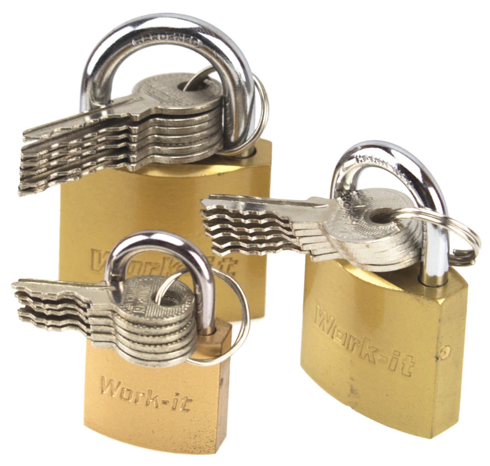 Drei Vorhängeschlösser mit insgesamt 18 Schlüsseln im Set.