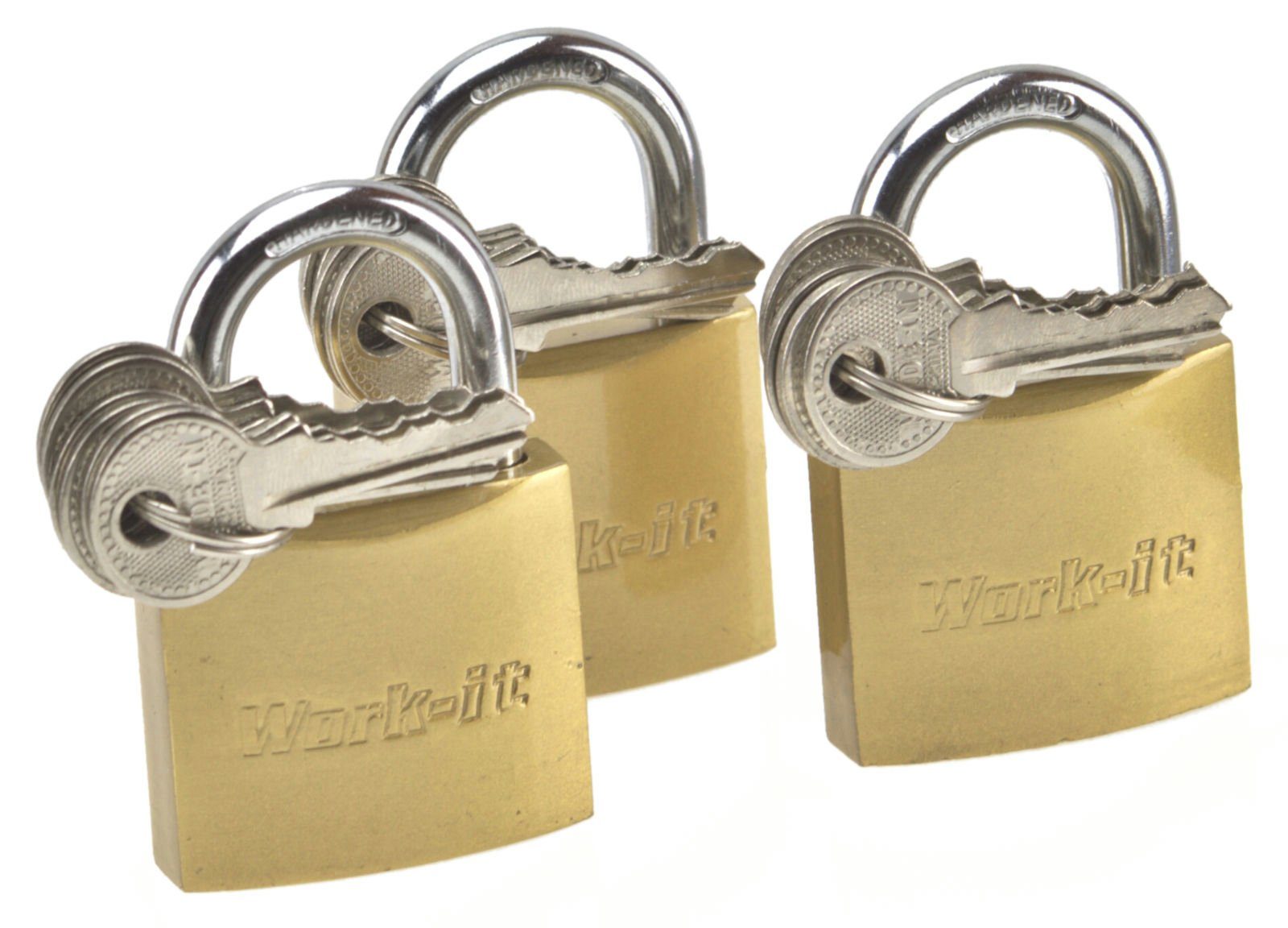 Drei Vorhängeschlösser mit insgesamt 18 Schlüsseln im Set.