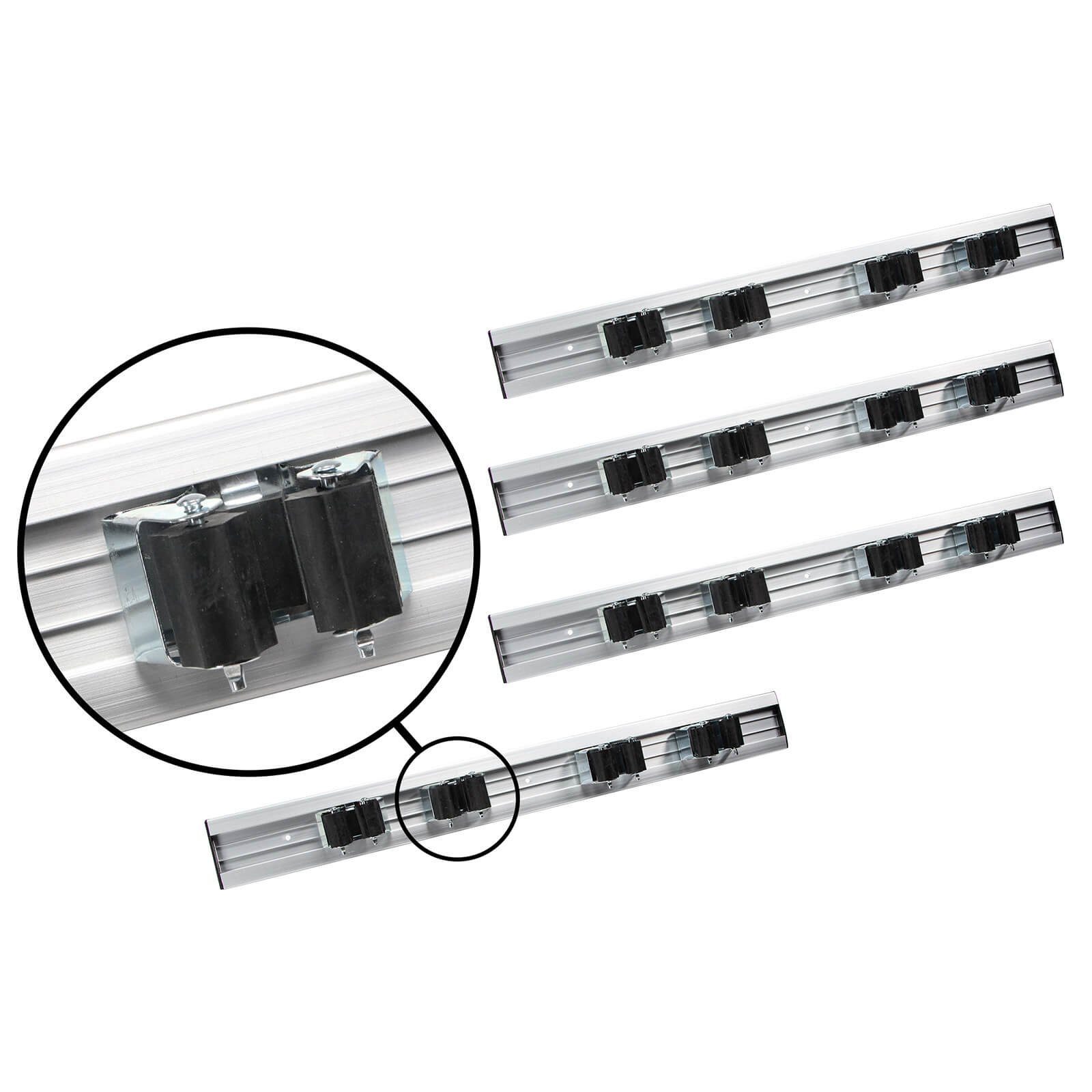 Der Werkzeug und Besen Wandhalter auf Aluschiene ist die perfekte Lösung für die organisierte Aufbewahrung Ihrer Werkzeuge, Besen und Gartengeräte mit Rundstielen. Diese innovative Aufbewahrungslösung wurde entwickelt, um Ihren Raum effizient zu nutzen und gleichzeitig Ihre Werkzeuge sicher und leicht zugänglich zu halten. Die robuste Aluschiene sorgt für Stabilität und Langlebigkeit, während die vier verschiebbaren Klemmhalter eine flexible Anpassung an verschiedene Werkzeuge ermöglichen.
