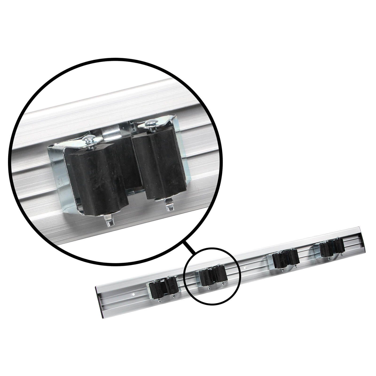 Der Werkzeug und Besen Wandhalter auf Aluschiene ist die perfekte Lösung für die organisierte Aufbewahrung Ihrer Werkzeuge, Besen und Gartengeräte mit Rundstielen. Diese innovative Aufbewahrungslösung wurde entwickelt, um Ihren Raum effizient zu nutzen und gleichzeitig Ihre Werkzeuge sicher und leicht zugänglich zu halten. Die robuste Aluschiene sorgt für Stabilität und Langlebigkeit, während die vier verschiebbaren Klemmhalter eine flexible Anpassung an verschiedene Werkzeuge ermöglichen.