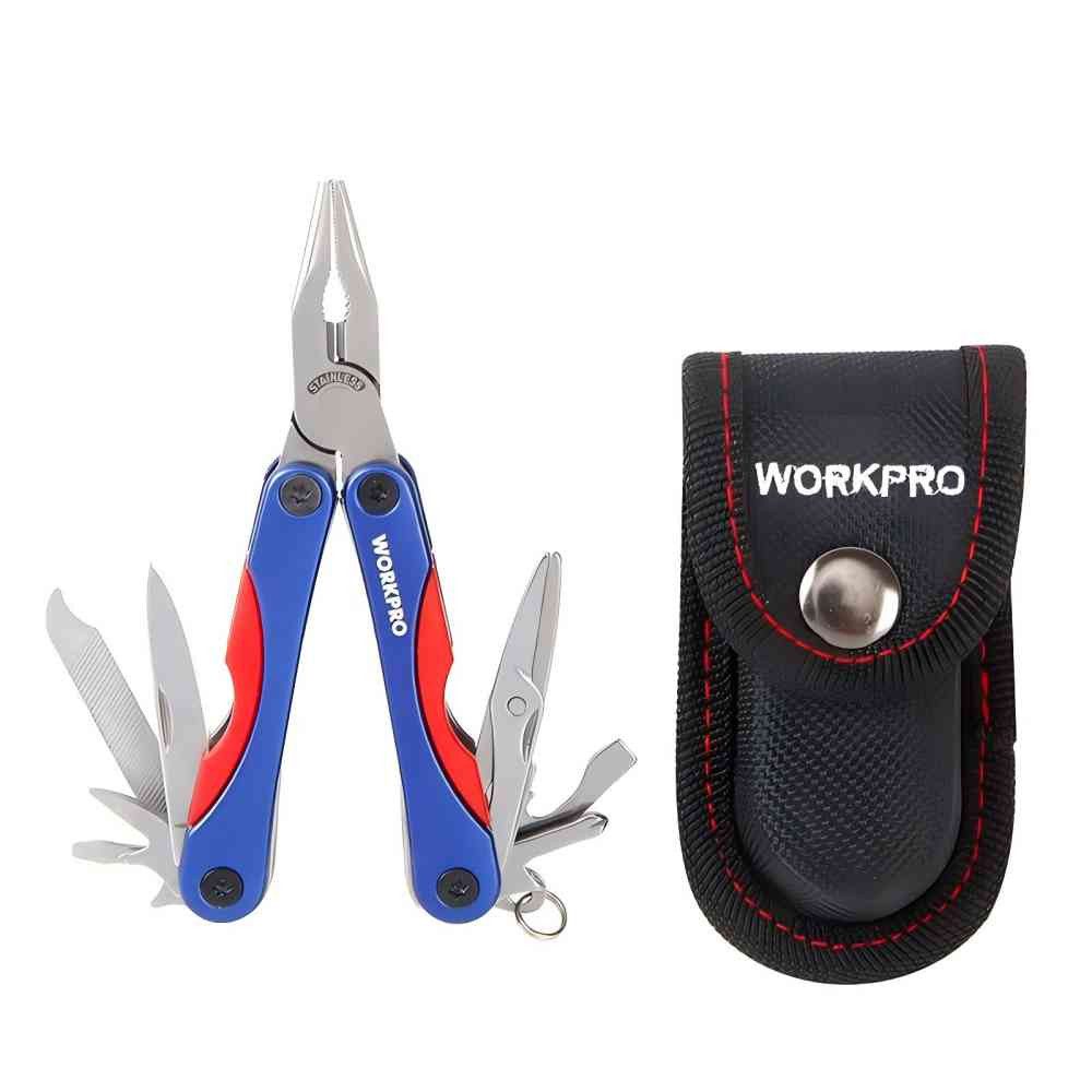 Die WORKPRO 12-in-1-Multifunktionszange vereint 12 Werkzeuge in einem kompakten Design. Sie besteht aus langlebigem Edelstahl und Aluminium, mit ergonomischem Griff für sicheren Halt. Perfekt für Outdoor-Aktivitäten, inklusive praktischer Aufbewahrungstasche.