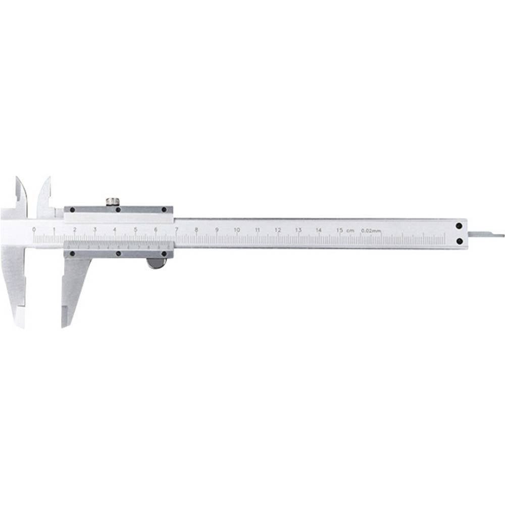 Eigenschaften | Material: Stahl nicht rostend · Messbereich (max.): 150 mm · Messschieber-Besonderheiten: mit Feststellschraube, inkl. Tiefenklinge · kalibriert: Werksstandard (ohne Zertifikat) |