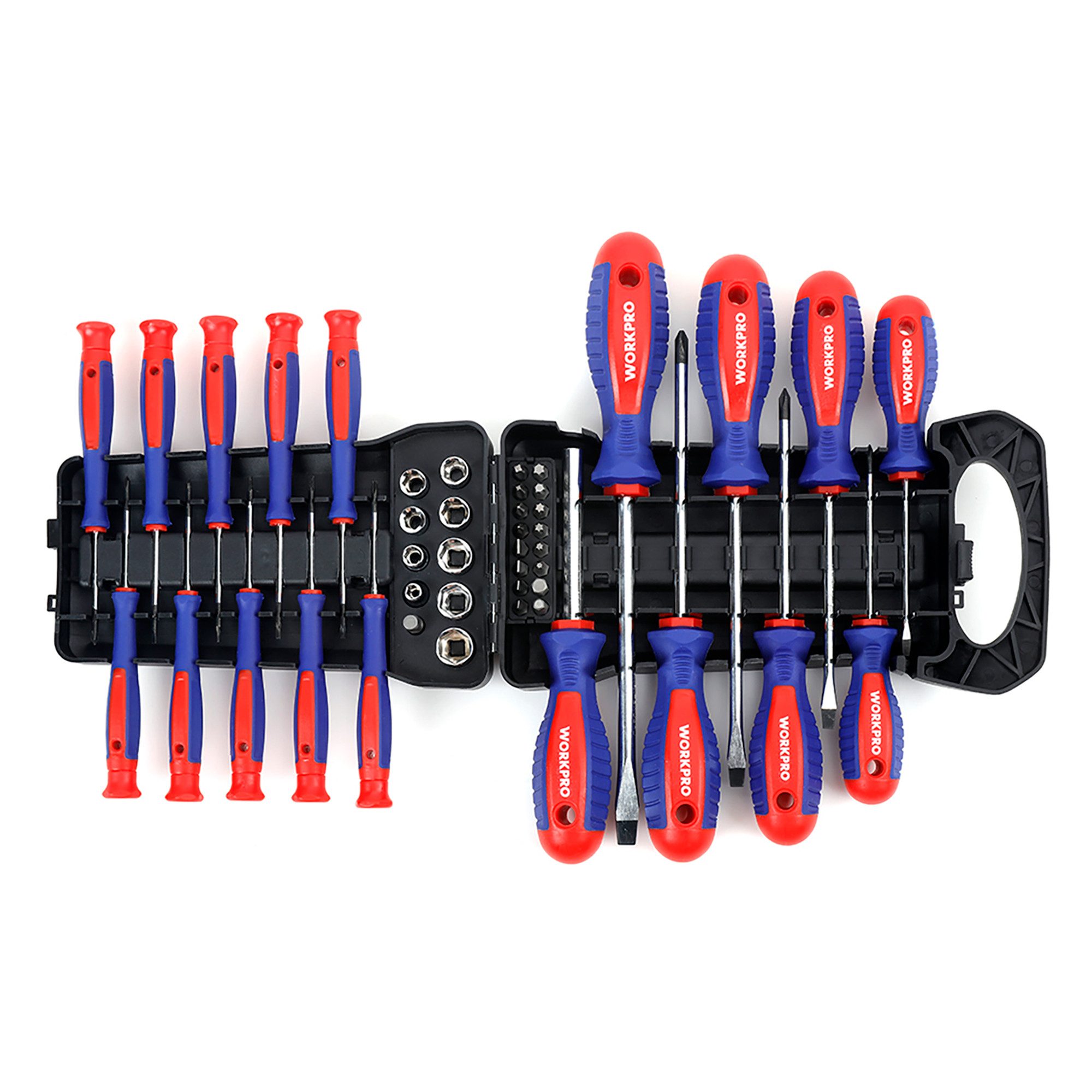 Dieses 45-teilige Schraubendreher Bit Set aus robustem CR-V Stahl bietet eine große Auswahl an Bits und einen magnetischen Halter für eine einfache Handhabung.
