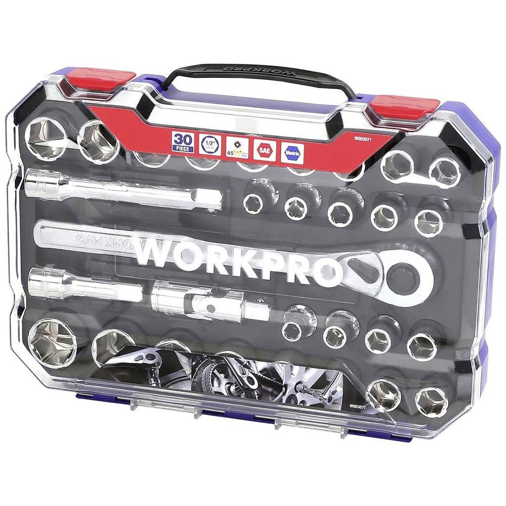 WorkPro Steckschlüssel 30tlg Steckschlüssel-Set mit Schnellspannratsche.