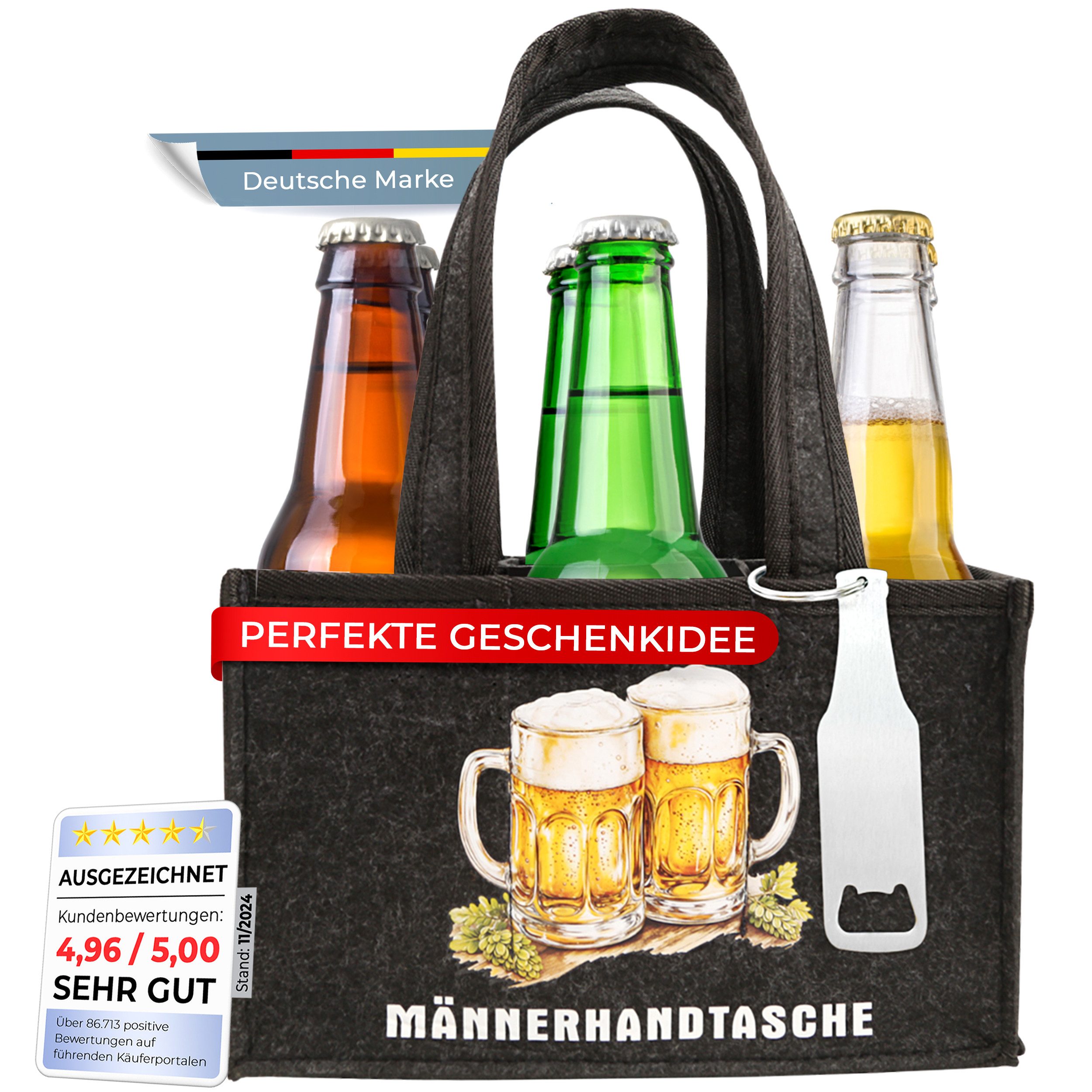 Vielseitige Verwendung: Perfekt für Grillabende, Outdoor-Events, Camping oder als originelles Gadget für unterwegs – ein praktischer Begleiter für jede Gelegenheit. Perfektes Geschenkset: Du hast die Wahl zwischen 3 verschiedenen Sets: Entscheide dich für das 2-teilige Set bestehend aus der Männerhandtasche mit integriertem Flaschenöffner, dem 3-teiligem Set ohne Socken, oder dem großen 4-teiligem Set mit Socken. Die perfekte Wahl um Freude zu verschenken! Große Kapazität: Die Flaschentasche bietet Platz für 6 Flaschen (0,5l oder 0,33l), handelsübliche Dosen oder andere Getränke. Die kompakte Размер (23,3 x 14 x 14 cm) und die Innenaufteilung minimieren Kollisionen und Geräusche. Praktisches Design: Kombiniert stilvolle Optik mit Funktionalität. Der robuste Randstoff und die stabile Verarbeitung sorgen für sicheren Transport und einfache Zusammenklappbarkeit. Für jeden Anlass: Egal ob Zuhause, beim Picknick, Camping, Junggesellenabschied oder Public Viewing – der Flaschenträger passt zu jeder Situation und hält das Gewicht problemlos.