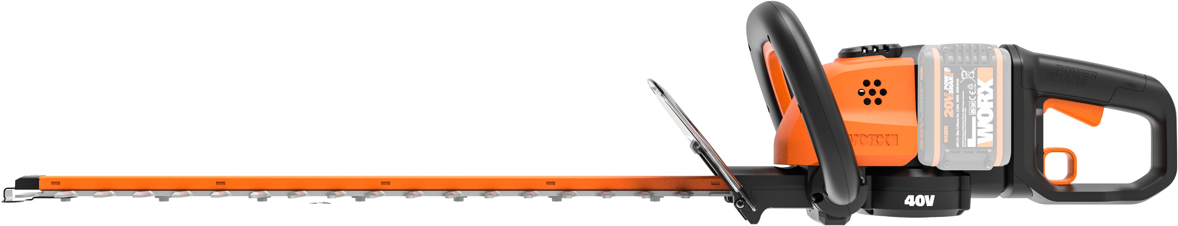 Das Arbeitstier unter den Heckenschneidern für schwere Arbeiten. Die Worx 40V PowerShare WG284E.9 hat die Kraft und Leistung, um Äste bis zu 27 mm zu schneiden. Mit den extra langen, lasergeschnittenen 60 cm langen Klingen sind auch größere Schnitt- und Trimmarbeiten ein Kinderspiel. Der um 180 Grad drehbare Griff bietet bequeme Ergonomie in jedem Arbeitswinkel - vertikal oder horizontal.