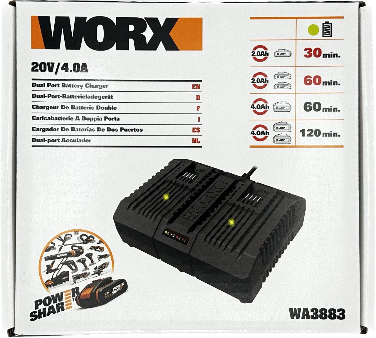 Lieferumfang | Worx WA3883 20V PowerShare Ladegerät |
