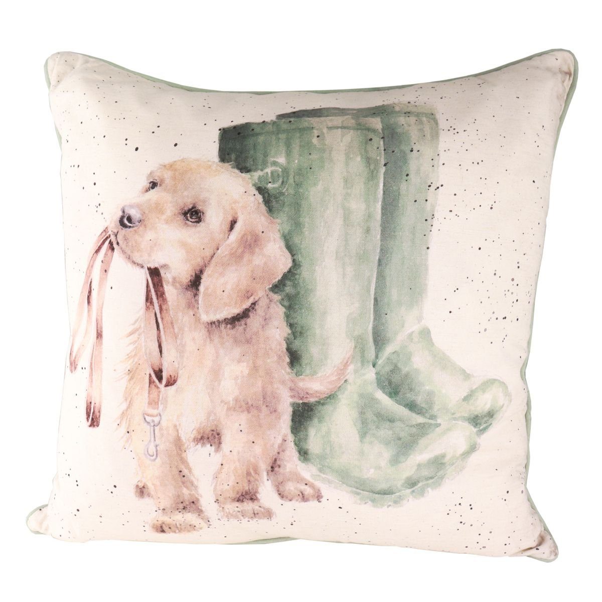 Wrendale Designs Baumwoll-Leinen Kissen Hunde-Wetter ca. 60 x 60 cm Voller Vorfreude ist der niedliche Welpe bereit, dass es endlich mit der Gassi-Runde losgeht. Wer ein dickes Fell hat, der freut sich auch bei Hunde-Wetter! Und damit ist der Welpe nicht allein - das Wende-Kissen bietet auf der anderen Seite noch mehr freudige Vierbeiner in voller Aktion. Всеs gewohnt tierisch schön illustriert von der englischen Künstlerin Hannah Dale. Material Kissenbezug: 70% Baumwolle, 16% Leinen, 14% Viskose | hergestellt in China Maße Kissenbezug: ca. 60 x 60 cm (LXB) Waschhinweis für Kissenbezug: auf Links bei 30°C maschinenwaschbar, auf Stufe 1 Bügeln Kissen-Grundfarbe auf der Vorderseite: Beige-Natur | Rückseite helles Lichtgrün | farblich abgesetzte Paspel | verdeckt eingenähter Reißverschluss Material Innenkissen: 50% Baumwolle, 50% Polyester, Federfüllung mit Federn aus ethischen Quellen - erfüllt die Requirements of the 1988 Safety Regulations BS5852 Hinweis: Lieferung umfasst Kissenbezug und herausnehmbares Innenkissen Dieses Angebot gilt für ein Stück doppelseitig verschieden bedrucktes Baumwoll-Leinen Kissen mit Druck Motiv: Hunde-Wetter von Wrendale Designs by Hannah Dale, ca. 60 x 60 cm, Artikel WD-LCU006, ohne Deko oder sonstigem Zubehör.