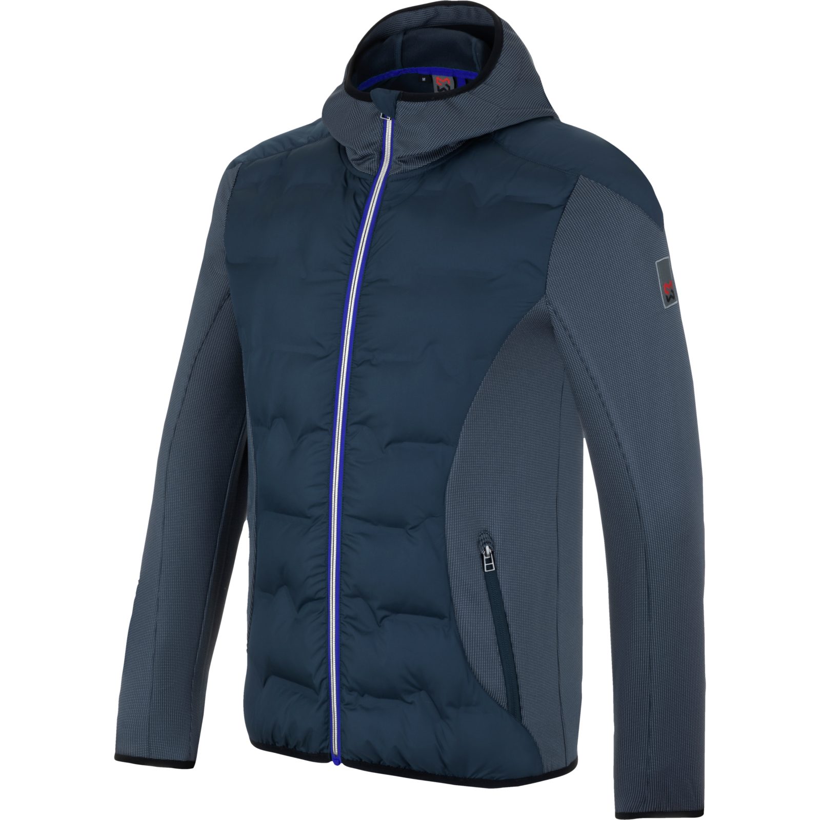 Materialzusammensetzung | Hauptmaterial: 96% Polyester (recycelt), 4% Elastan; Kontraststoff: 100% Polyester (recycelt); Wattierung: 100% Polyester (recycelt) - 200 g/m²; Futter: 100% Polyester (recycelt) - ca. 615 g/m² |