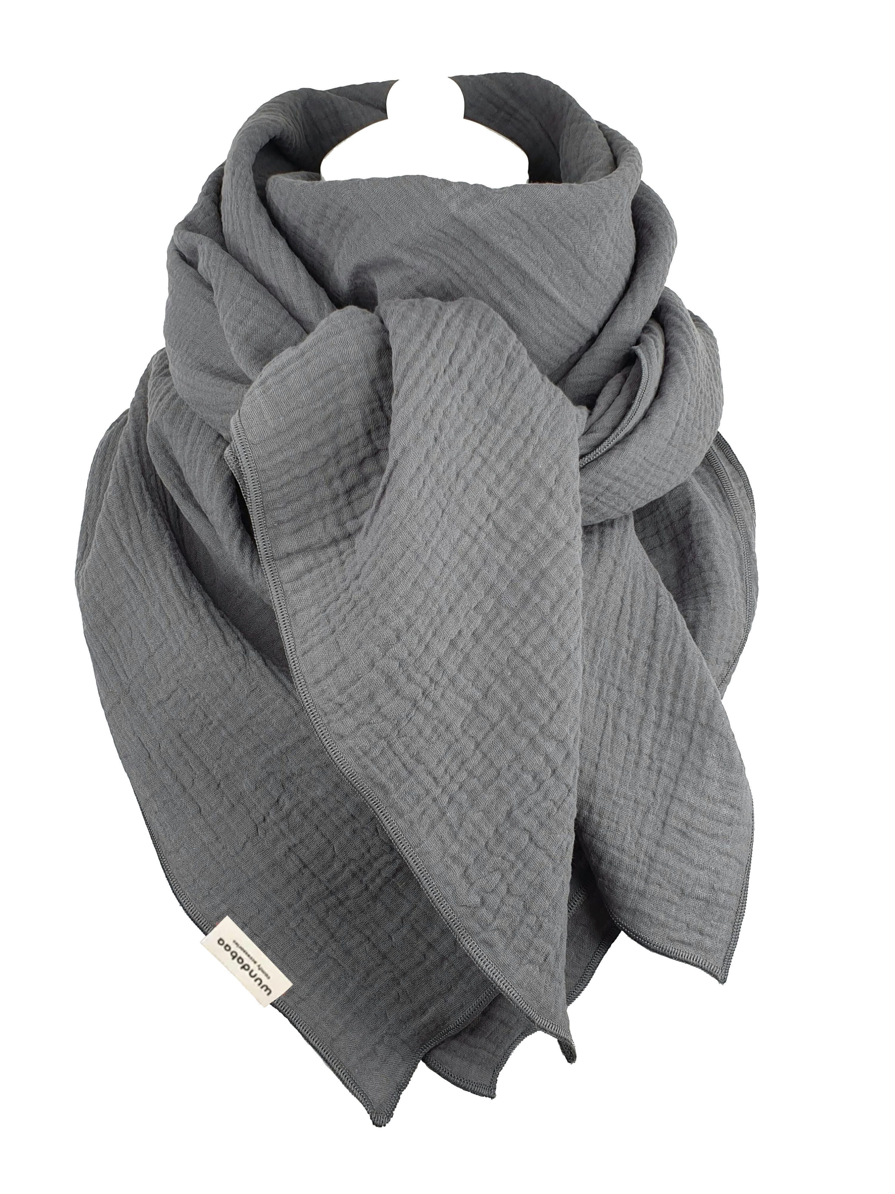 Dieses Musselintuch kann getragen werden als Halstuch, Dreieckstuch, XXL-Schal, Schultertuch, Stola oder im Stewardessen-Stil. Der Musselinstoff ist besonders weich und angenehm auf der Haut zu tragen und geeignet für alle Jahreszeiten. Die fluffige, luftige Struktur von Musselin hat eine ausgleichende Wirkung, an kühleren Tagen angenehm wärmend und an wärmeren Tagen angenehm kühlend. Unsere Musselin-Tücher designen wir im minimalistischen, modernen Stil, in großer Farbauswahl, passend für Damen und Herren. In feiner Qualität mit Bauschgarn umrandet, bekommt dieses Tuch ein schönes Finish und einen sauberen Abschluss. Für dieses Tuch wird ausschließlich hochwertiger, zweilagiger Musselin aus 100 % Bio-Baumwolle verwendet. In unserer eigenen Manufaktur achten wir auf beste, handgefertigte Verarbeitungsqualität und stellen langlebige Accessoires her.