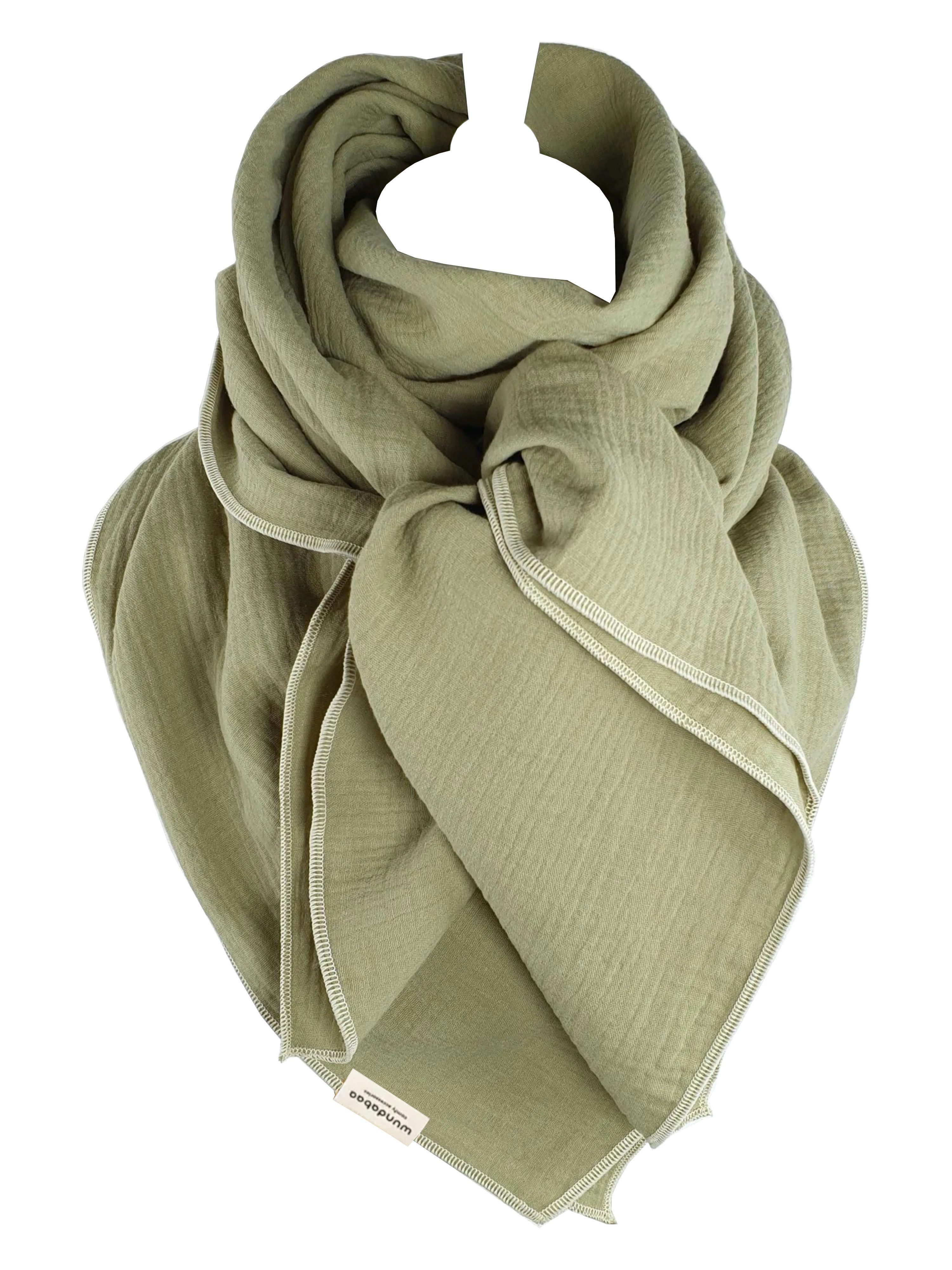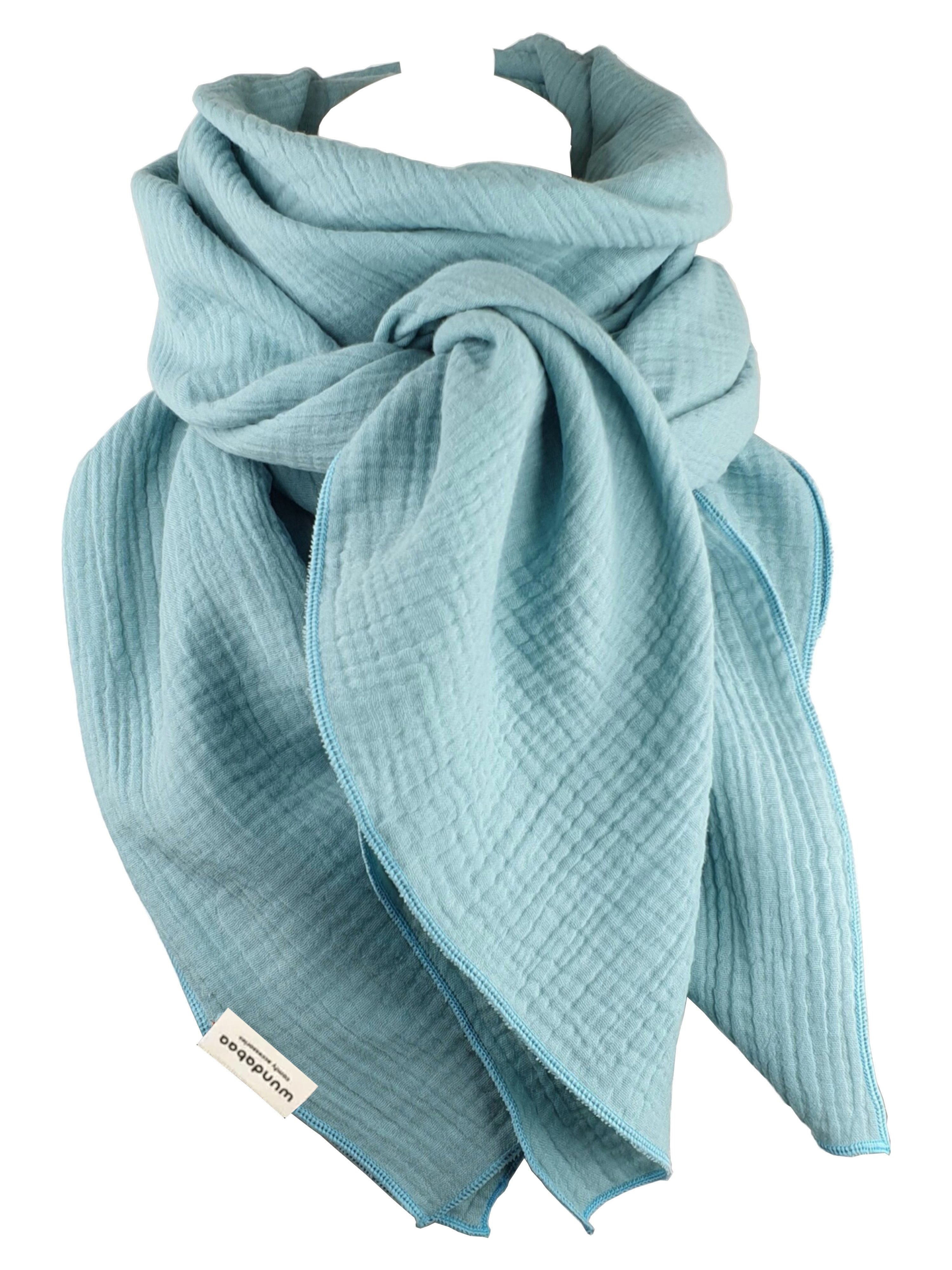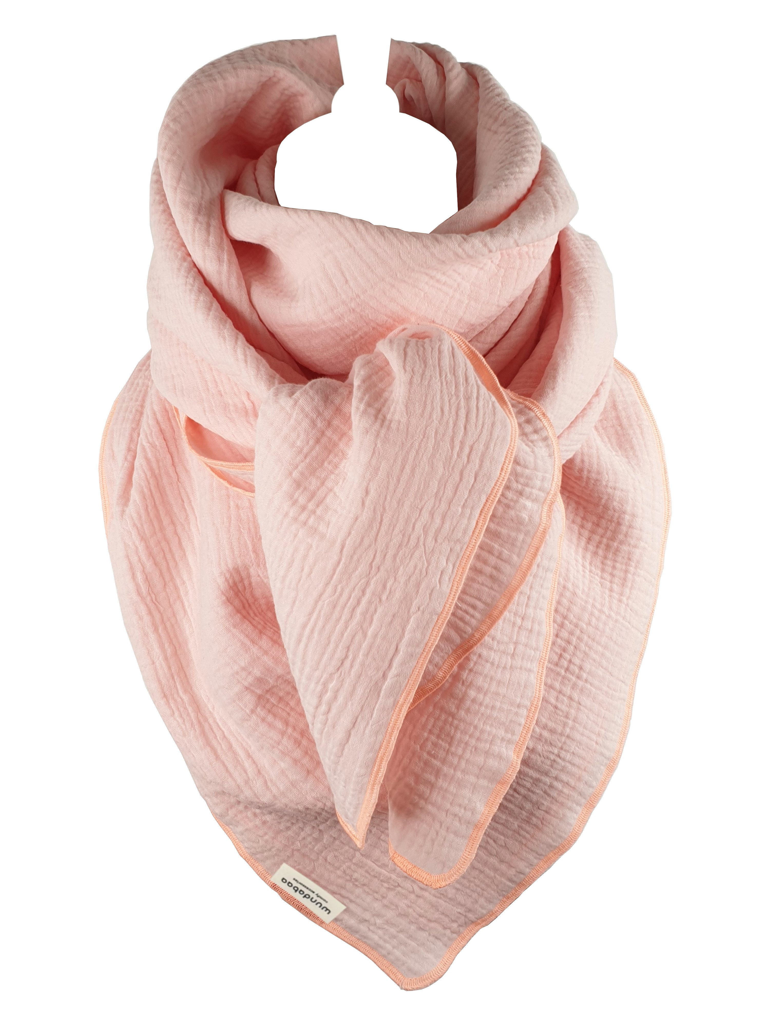 Dieses Musselintuch kann getragen werden als Halstuch, Dreieckstuch, XXL-Schal, Schultertuch, Stola oder im Stewardessen-Stil. Der Musselinstoff ist besonders weich und angenehm auf der Haut zu tragen und geeignet für alle Jahreszeiten. Die fluffige, luftige Struktur von Musselin hat eine ausgleichende Wirkung, an kühleren Tagen angenehm wärmend und an wärmeren Tagen angenehm kühlend. Unsere Musselin-Tücher designen wir im minimalistischen, modernen Stil, in großer Farbauswahl, passend für Damen und Herren. In feiner Qualität mit Bauschgarn umrandet, bekommt dieses Tuch ein schönes Finish und einen sauberen Abschluss. Die Pastell-Töne verleihen dem Tuch einen frischen, sommerlichen und leichten Stil. Für dieses Tuch wird ausschließlich hochwertiger, zweilagiger Musselin aus 100 % Bio-Baumwolle verwendet. In unserer eigenen Manufaktur achten wir auf beste, handgefertigte Verarbeitungsqualität und stellen langlebige Accessoires her.