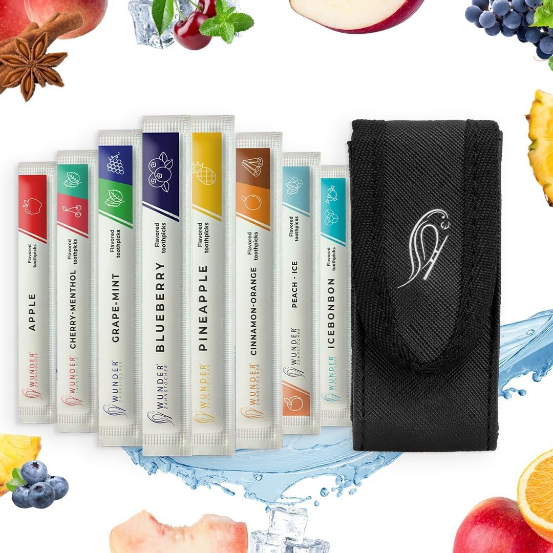 Wunder Zahnstocher Mundpflegecenter Wunder Zahnstocher mit Geschmack - Ledertasche + 80er Single Pack