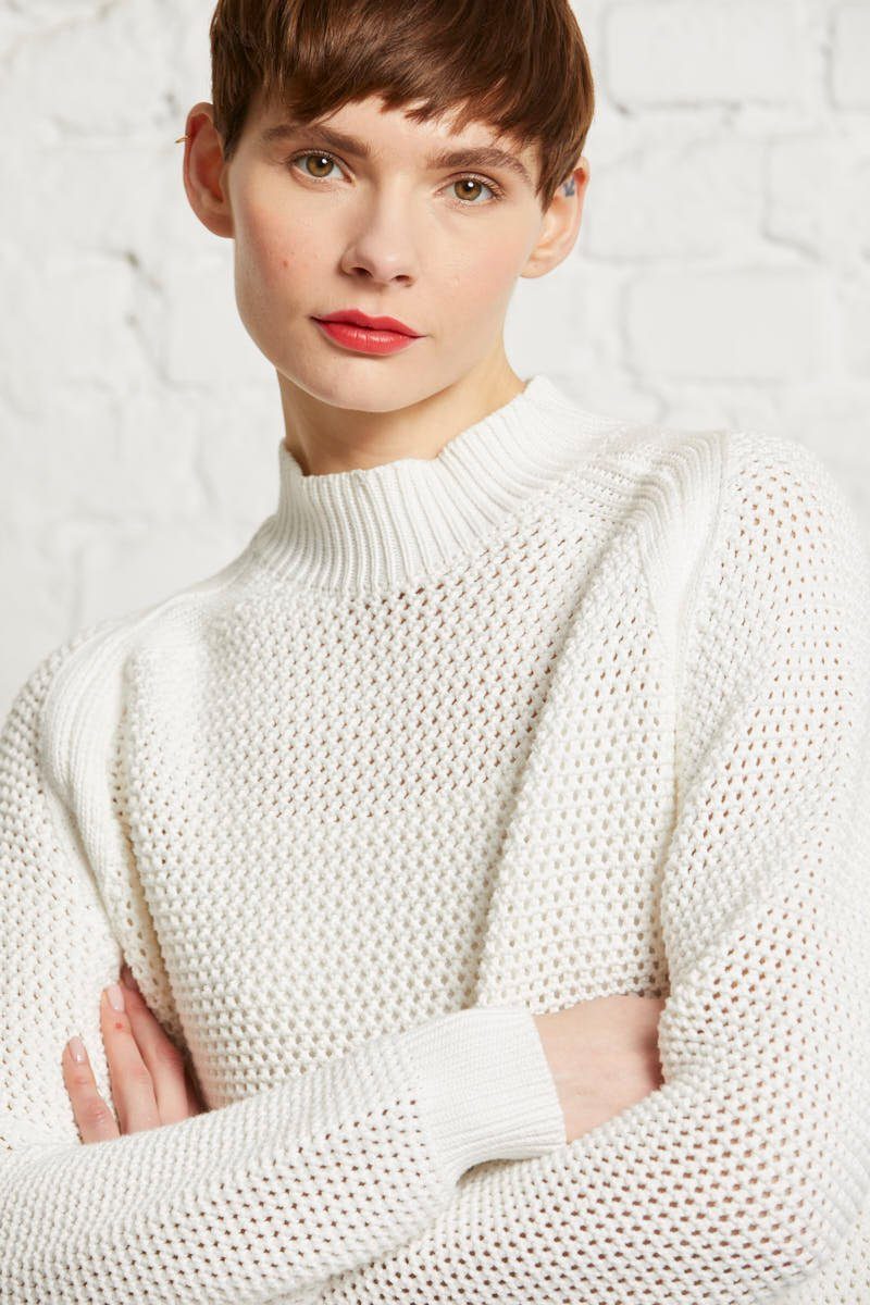 Unser aktueller Lieblingspullover. Das ausgefallene Lochmuster macht ihn zu etwas ganz Besonderem. Er ist perfekt für kühlere Sommertage, denn durch den höher gearbeiteten Turtle Neck und die anliegenenden Strickbündchen ist man auch bei Wind und Wetter gut geschützt. Das Material ist stabil und hat einen tollen Griff, zugleich liegt es soft und angenehm auf der Haut. Und mit einem Long sleeve T-Shirt darunter, kann man den Pullover auch noch weit in den Herbst hineintragen