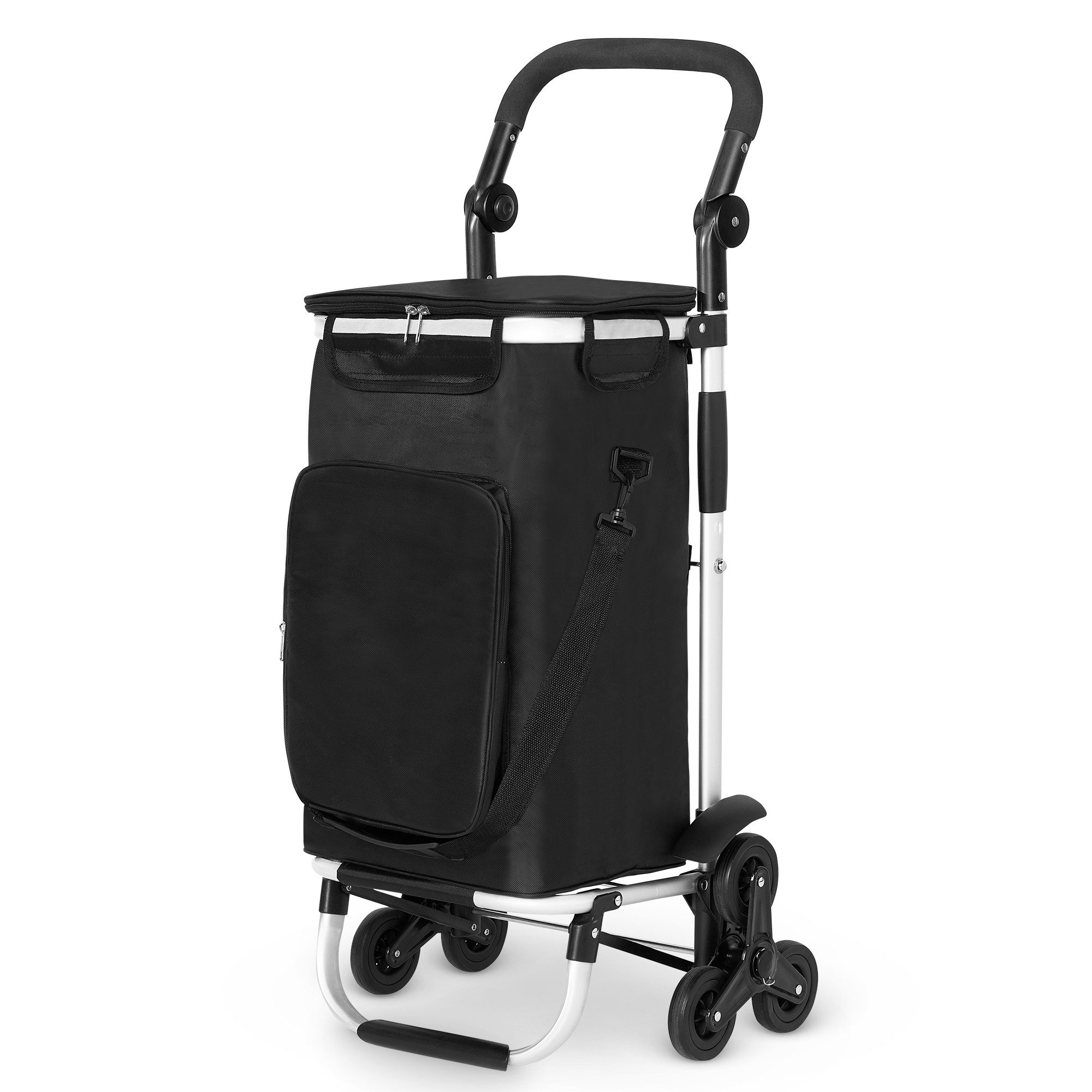 Der Trolley ist faltbar und leicht, wodurch er einfach zu verstauen ist und bei Bedarf schnell einsatzbereit ist. Das wasserabweisende Material schützt deine Einkäufe zuverlässig bei jedem Wetter. Die stabilen Treppensteig-Rollen meistern problemlos Bordsteine und Treppenstufen, während der ergonomische Soft-Griff für ein angenehmes Ziehen sorgt.