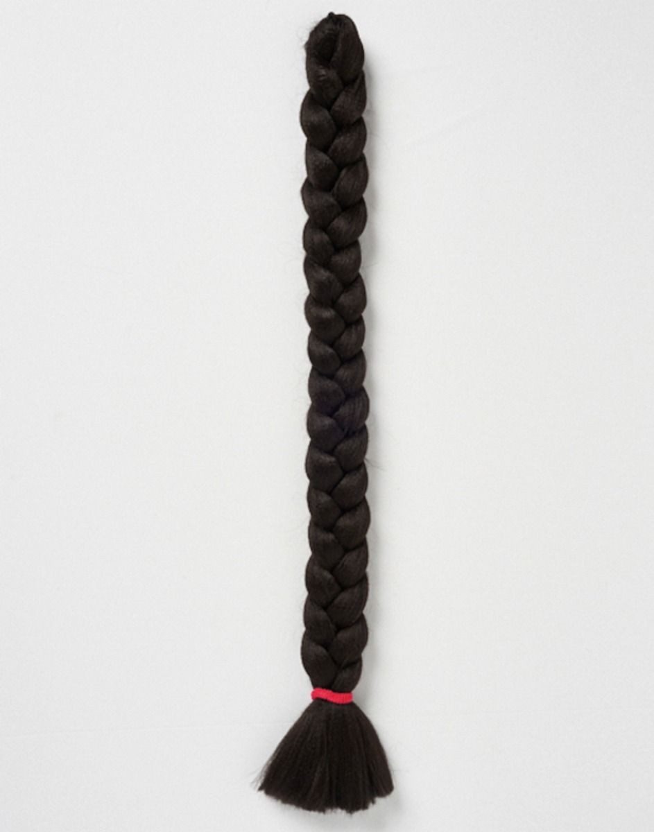 Es ist ein schöner dicker sehr langer Zopf aus Kunsthaar. Der Zopf geht mir bis zum Popo. Ich habe die Kastanienfarbe genommen. Der Zopf lässt sich gut flechten.