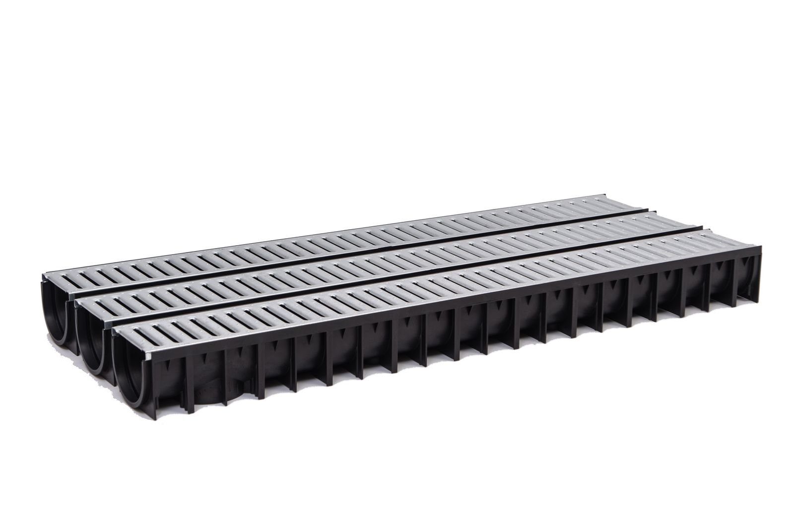 3x Xanie Kunststoff Entwässerungsrinne schwarz mit Stegrost Stahl verzinkt 1m Art. Nr. 319701 - EAN: 8032738671827