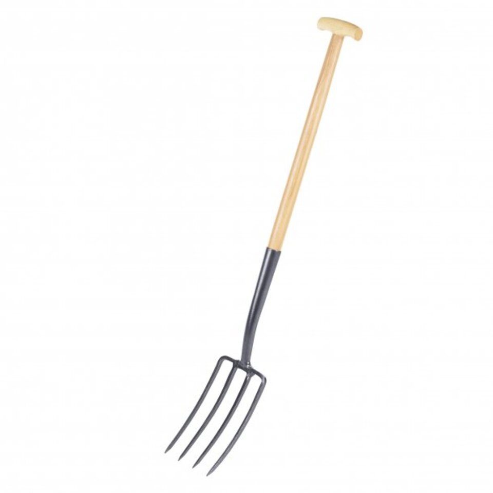 Vielseitiger Gartenhelfer zur Bearbeitung, Auflockerung und zum vorsichtigen Umgraben fester Böden sowie zum Ausgraben von Pflanzen – für verschiedene Bodentypen geeignet Mit vier stabilen Zinken zum Umpflanzen und Umgraben ohne Wurzelbeschädigung sowie praktischem T-Stiel für eine optimale Kraftübertragung und Benutzerfreundlichkeit Gabelkopf aus Stahl, T-Stiel aus Holz für einen handfesten Griff Ideal für alltäglich anfallende Gartenarbeiten – für Hobbygärtner und Profis, auch als Mistgabel verwendbar Gesamtlänge: ca. 107 cm, Stiellänge: ca. 54 cm, Arbeitsbreite: ca. 20 cm, Gewicht: ca. 1,8 kg Praktischer Allrounder für die Gartenarbeit: Die Spatengabel eignet sich besonders zum Wenden und Lockern von festen Böden in Beet oder Gemüsegarten, zum Einbringen von Kompost sowie schonenden Ausgraben von Pflanzen. Aber auch als Mistgabel findet der robuste Gartenhelfer Verwendung. Der solide Stiel und der Handgriff aus Holz sorgen für eine optimale Kraftübertragung, liegen angenehm in der Hand und bieten einen guten Halt beim Arbeiten – für ein leichteres Pflanzen und Umgraben. Die Zinken sind aus stabilem Stahl gefertigt und bieten eine Arbeitsbreite von ca. 20 cm. Sie eignen sich perfekt für unterschiedliche Bodentypen und viele alltäglich anfallende Gartenarbeiten – ein Highlight für Hobbygärtner und Profis.