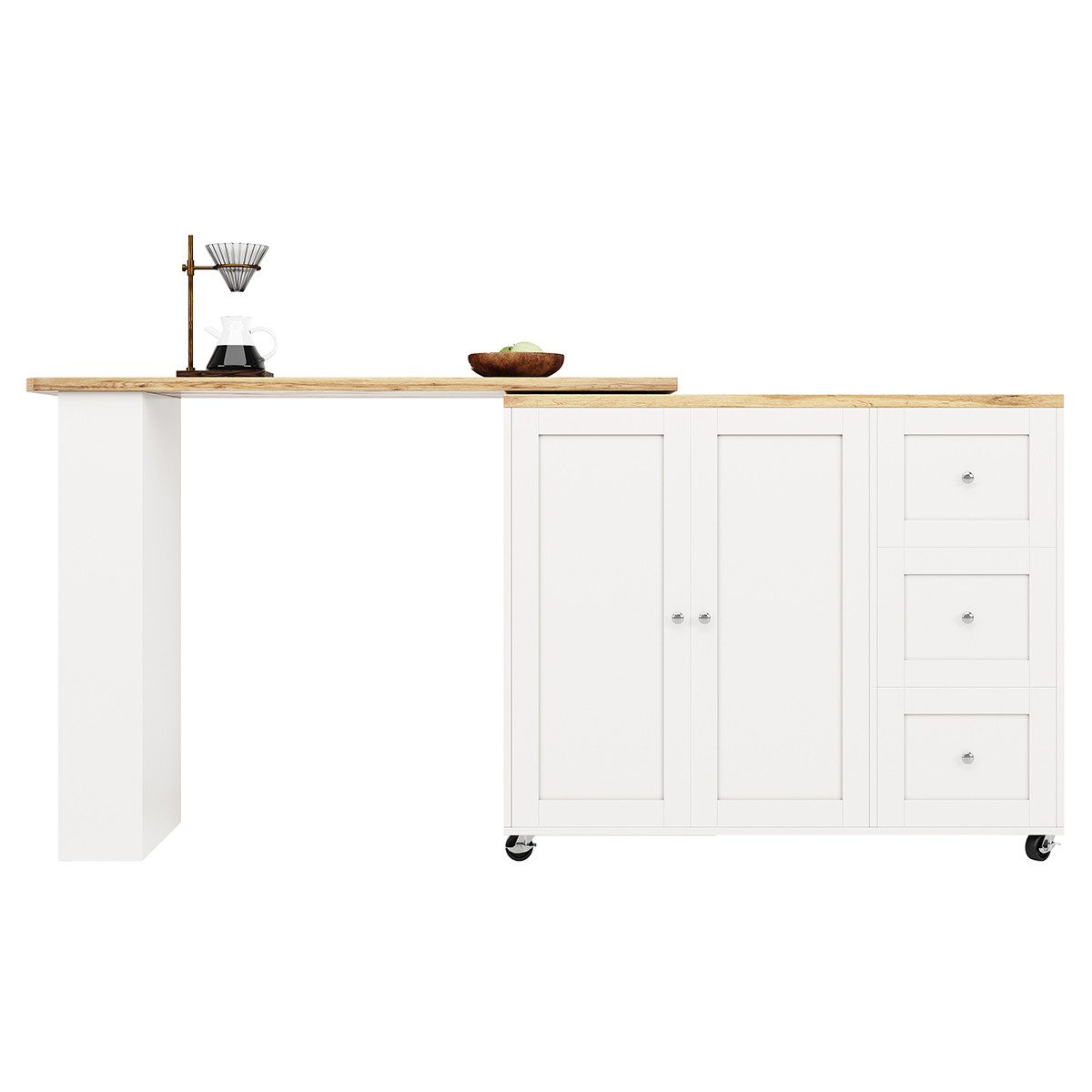 Multifunktionales Design: 360° drehbar und mit flexiblen Rollen ausgestattet, erreichen Sie mühelos jeden Winkel! Der moderne Bartischschrank passt perfekt in Ihre Küche, Ihr Wohnzimmer und Ihr Esszimmer.