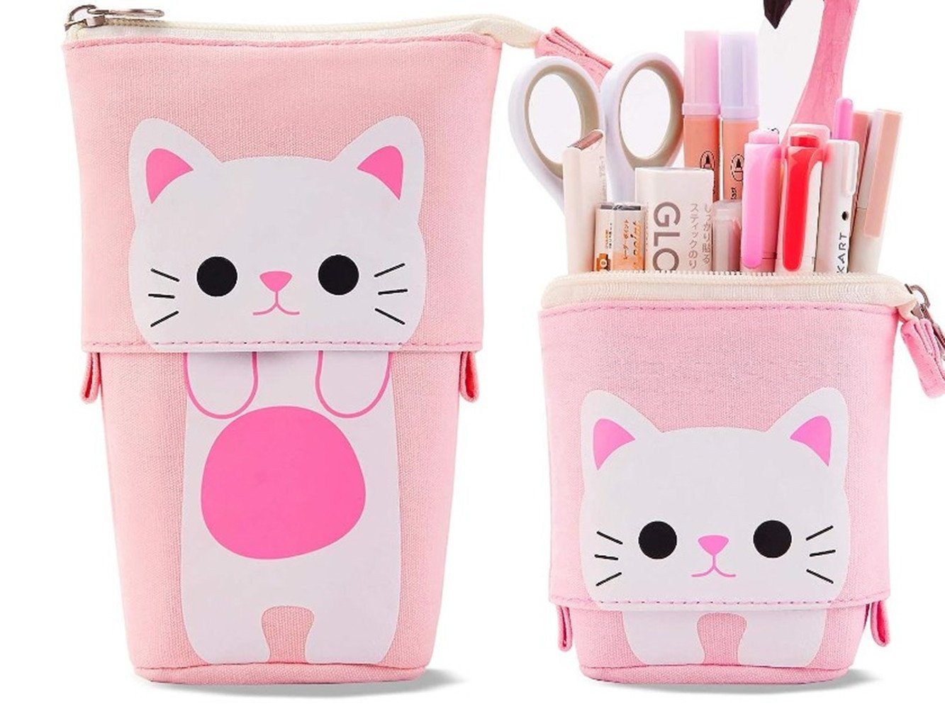 MultifunktionEs kann als Schlampermäppchen, Stifthalter, Schminktasche verwendet werden. Halten Sie Stifte, Radiergummis, Korrekturbänder und Make-up-Pinsel in Ordnung, einfach zu bedienen und sicher.