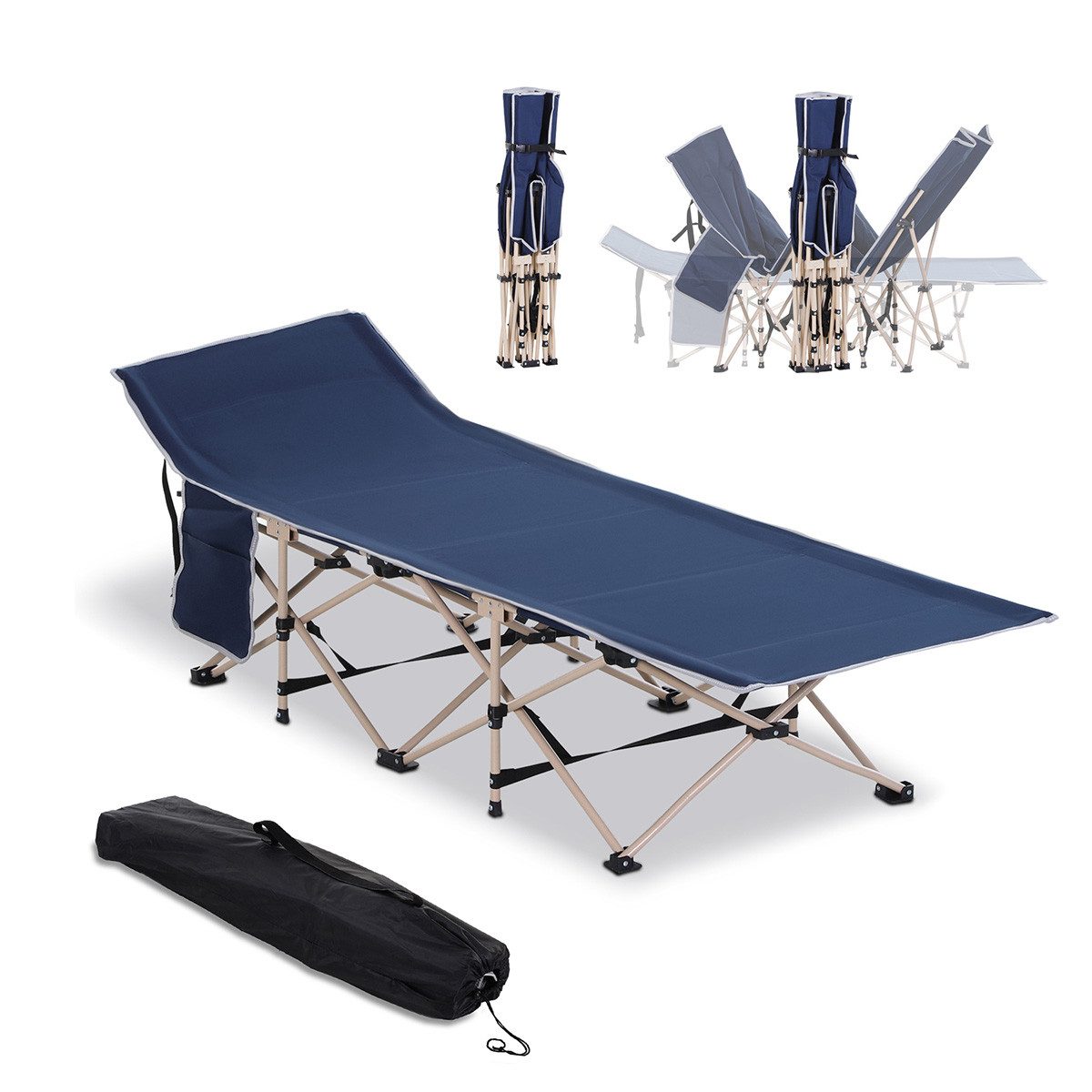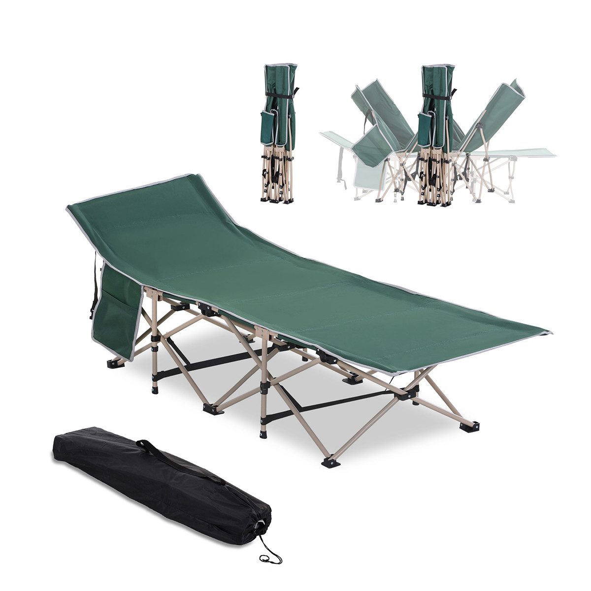 Strapazierfähiger Stoff: Der robuste 600D Oxford Bezug mit Beschichtung des Feldbetts ist wasser- und reißfest.