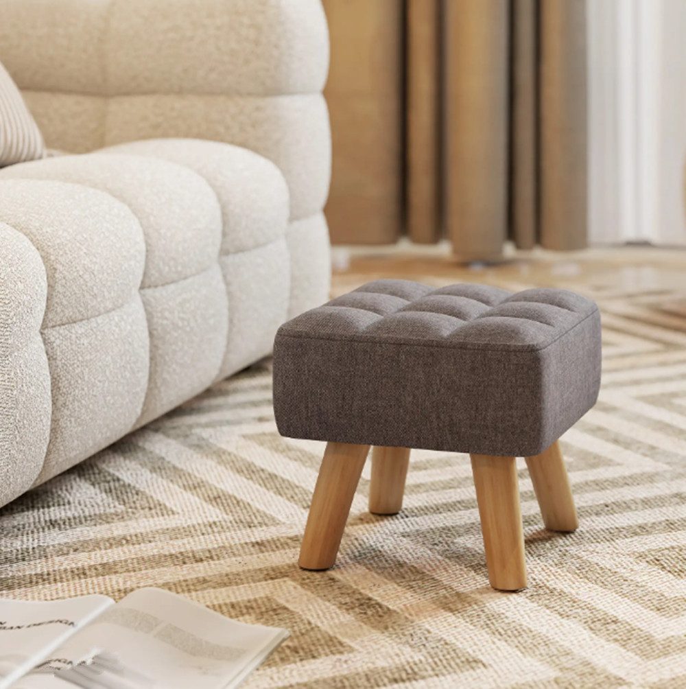 Stilvolles Design: Besticht durch eine schlicht getuftete Oberfläche und klare Linienführung, wodurch dieser kleine Fußhocker im Wohnzimmer eine subtile und elegante Bereicherung für jedes Interieur darstellt.