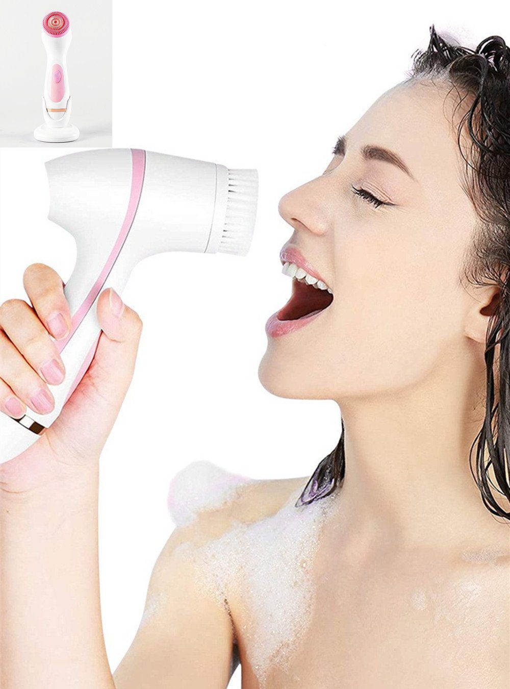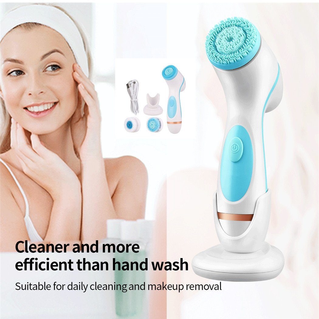 3 in 1 Design Mit 3 austauschbaren Reinigungsköpfen, 2 hautfreundlichen Silikonbürstenköpfen für Gesichtsmassage und Reinigung, 1 weichen und feinen Dupont-Bürstenkopf, der die Hautporen gründlich reinigt.