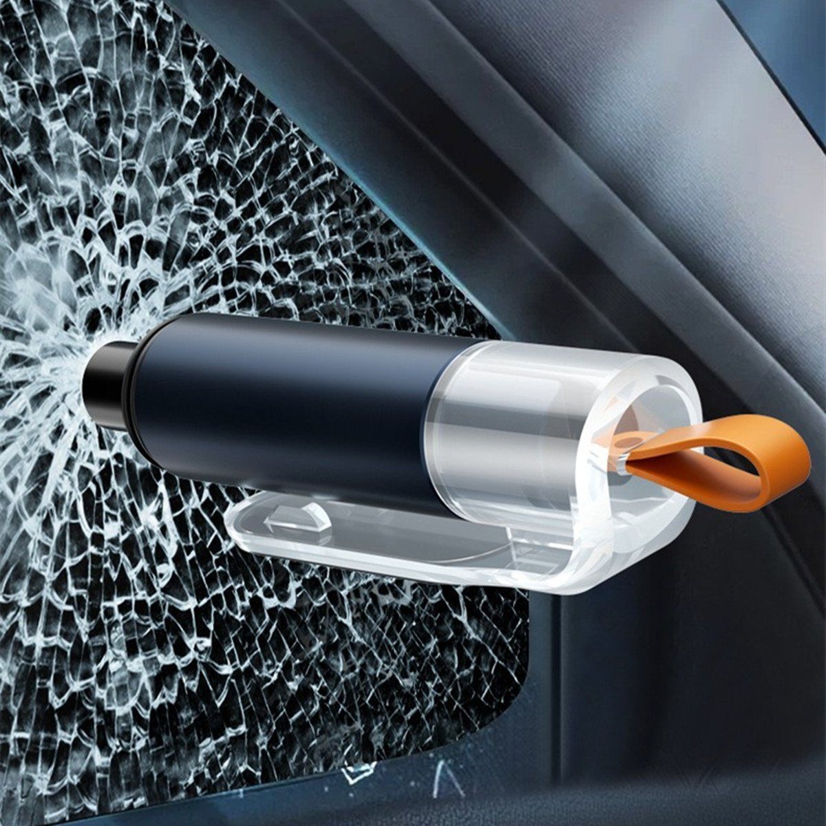 2-in-1-Glasbrecher Dieser lebensrettende multifunktionale Glasbrecher mit Sicherheitsfeder hat eine starke Klinge aus Wolframstahl mit einer Härte von 55, die einen starken Aufprall bietet, sodass Sie in einer Notsituation leichter aus dem Fahrzeug aussteigen können.