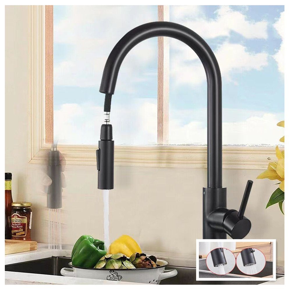 2 WASSERSTRAHLARTEN ZU WAHLEN: Küche Wasserhahn ausziehbar verfügt über 2 Wasserstrahlarten. Sprühmodus - Strak und schnell. Armatur Küche Schwarz kann Geschirr und Pfanne einfach waschen. Stahlmodus - Gleichmäßig und spritzfrei. Wasserhahn Küche kann Obst und Gemüse waschen.en Wasserfluss bekommt.